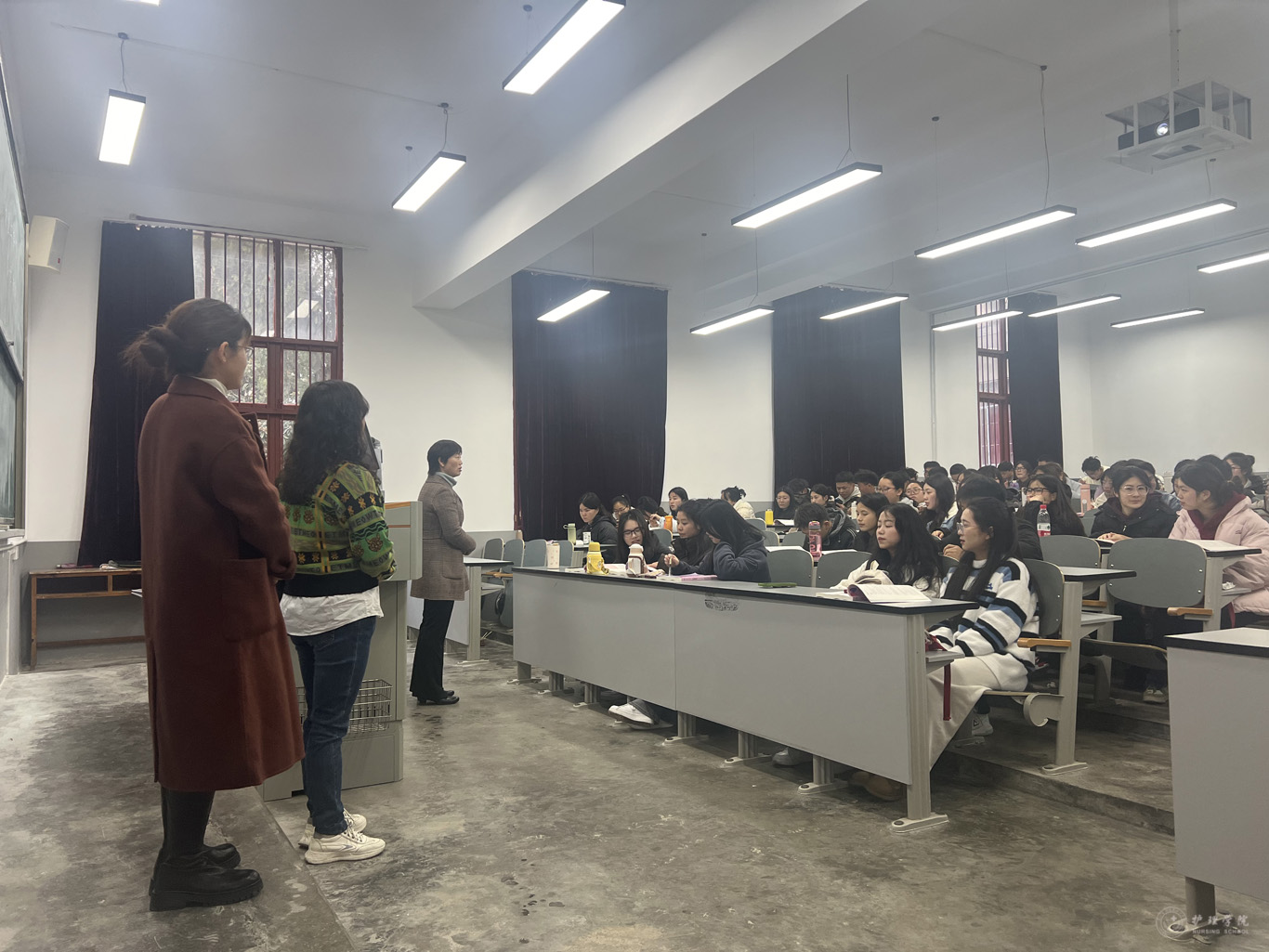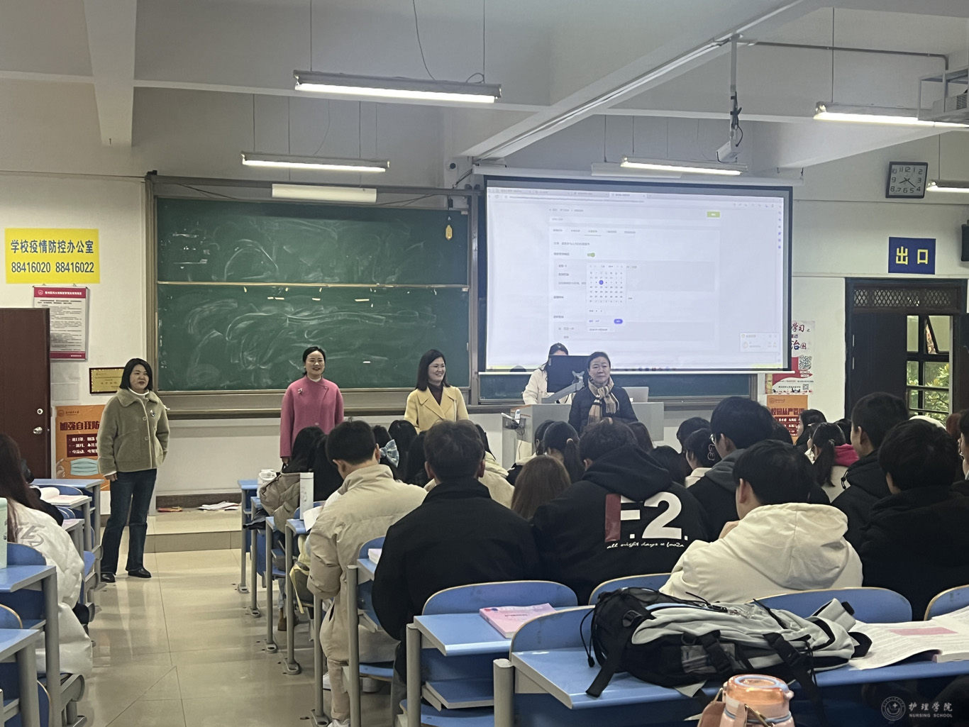 党委书记杨英、院长李亚玲、党委副书记兼纪委书记何为、副院长刘志燕、副院长王秀红、副处级组织员张黎分组带领学院本科教学督导分委员会成员通过深入课堂对授课教师教学大纲、教材、教案准备情况、教学环境、教学设施设备运行情况、学生出勤、课堂纪律等情况进行督导检查。