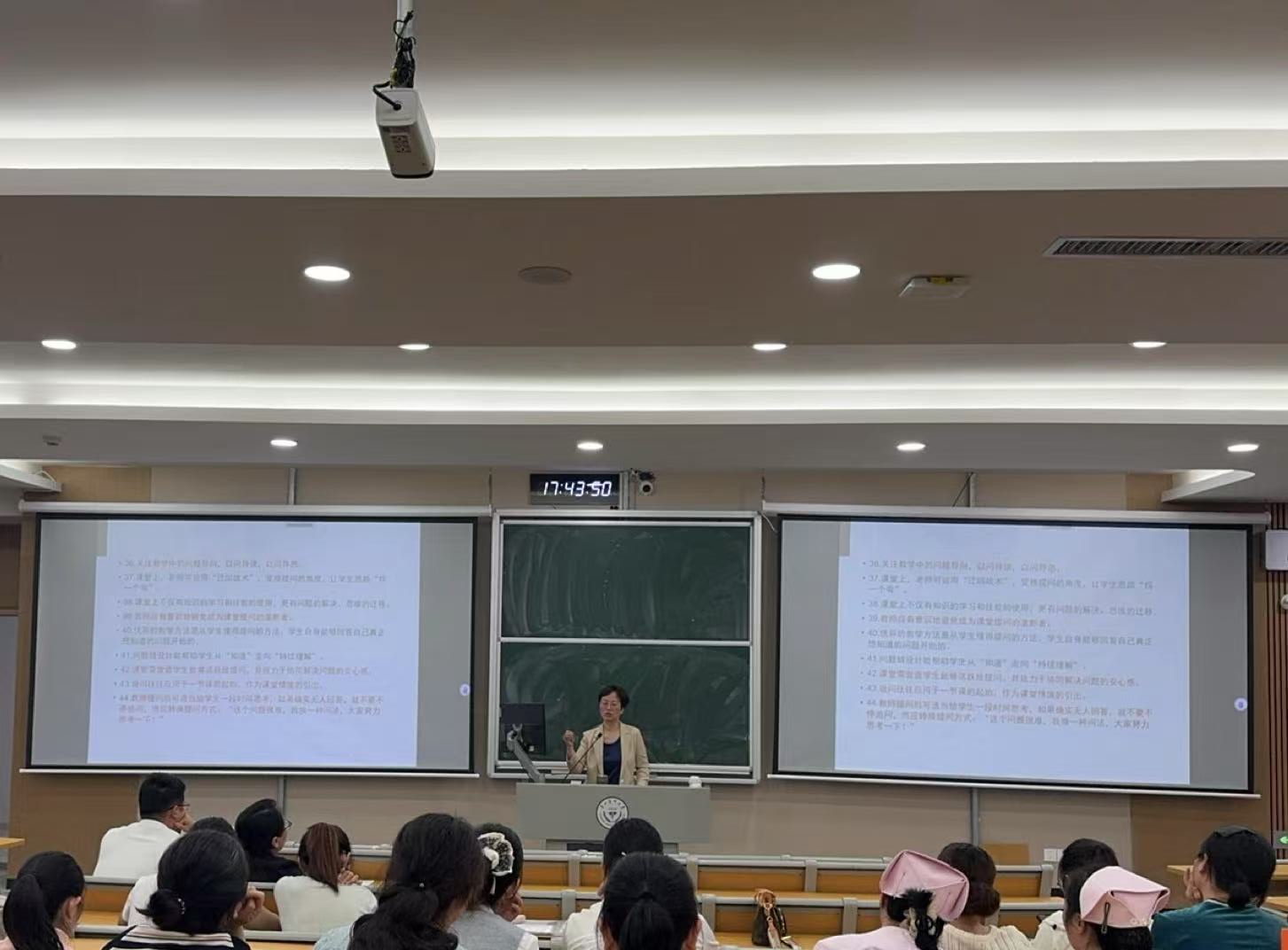 会上,王秀红院长以“上好一堂课的100件小事”为题,与参会教师进行课堂教学经验交流分享。她围绕教学准备、课堂互动、教学方法、课程思政,教学运行等方面,分享了实用且细致的教学经验与技巧,强调课堂教学细节对提升教学质量、助力审核评估的重要性。