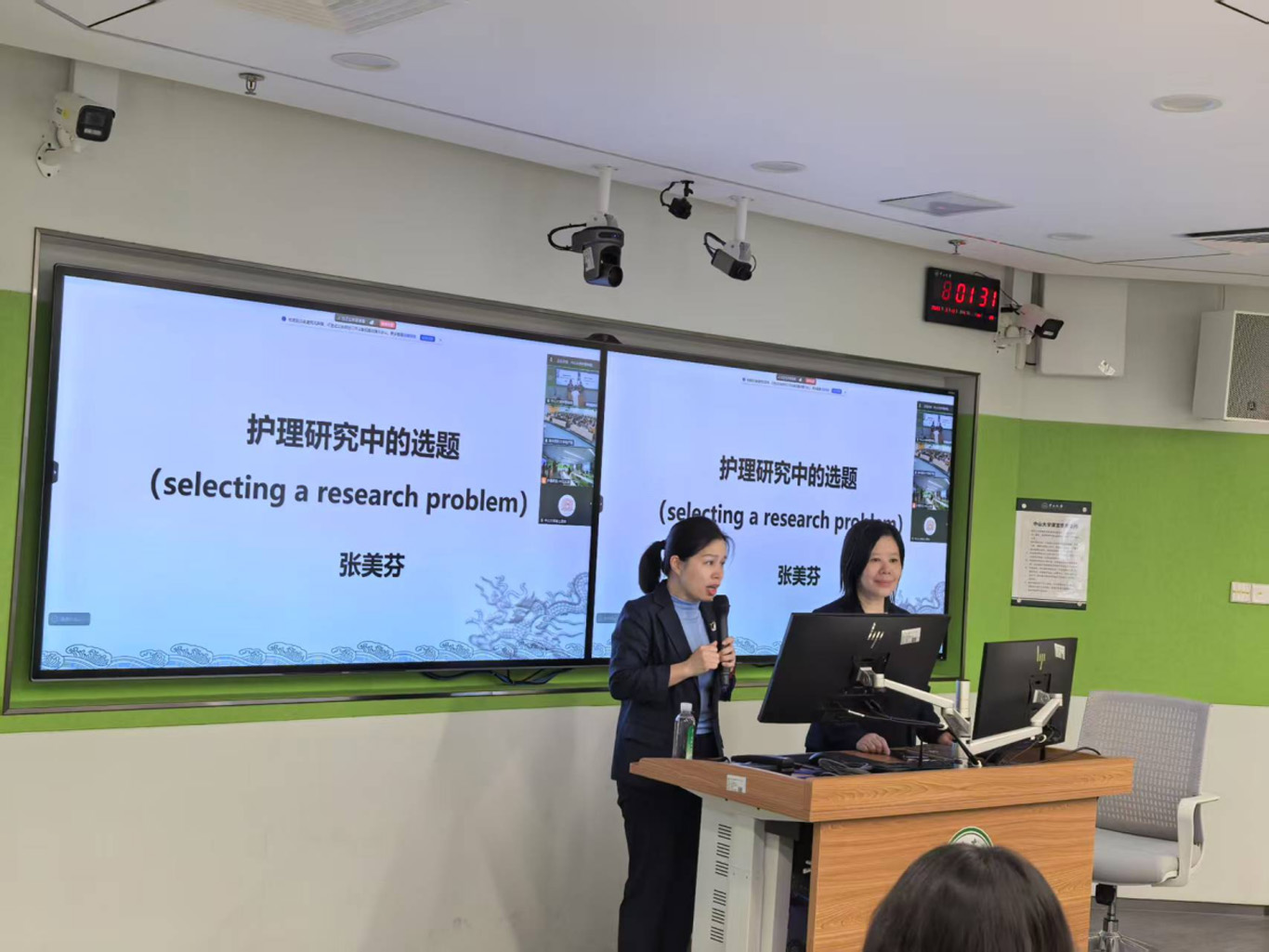 此次活动中中山大学张美芬教授、刘可副教授、张利峰副教授分别就“护理研究选题”“资料收集法”“研究报告的书写”,同步为中山大学美加墨世界杯官方网站2023级22名同学和美加墨世界杯官方网站2022级152名进行授课。美加墨世界杯官方网站护理学基础教研室副主任邹惠美及护理学研究教学团队教师冯安丽、卓英权老师作为主要参与教师共同协助同步课堂的开展。