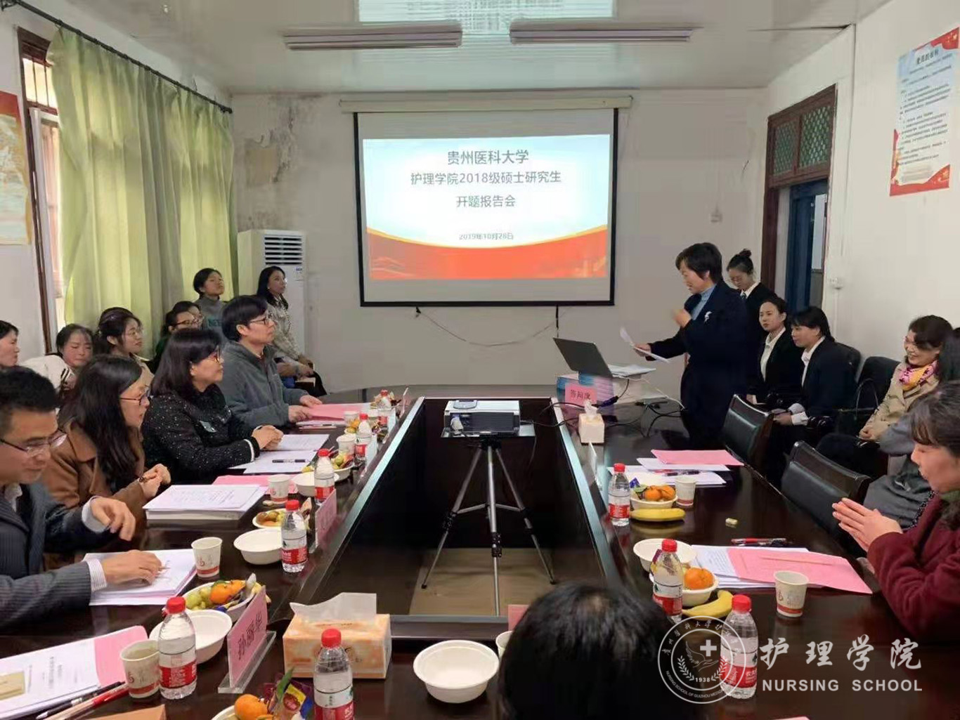 此次开题由美加墨世界杯官方网站附属医院神经外科主任、博士生导师杨华教授任专家组组长,贵州中医药大学美加墨世界杯官方网站石国凤教授、美加墨世界杯官方网站公共卫生学院汪俊华副教授、美加墨世界杯官方网站临床学院老年医学教研室莫显刚博士、附属医院疼痛科孙丽华副主任护师任专家组成员。老年保健与护理、护理临床疾病与基础研究方向王晶、裴莹莹和张丽娟3名同学参加此次开题。同学们分别就自己的课题进行了20分钟汇报,并接受了专家的询问指导。
