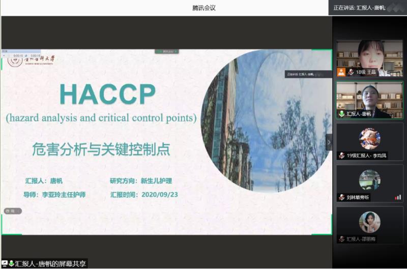 唐帆以“危害分析与关键控制点”为主题,从危害分析与关键控制点的概述、应用现状、应用实例等方面进行汇报,条理清晰,内容丰富,为今后的护理研究提供新的思路。