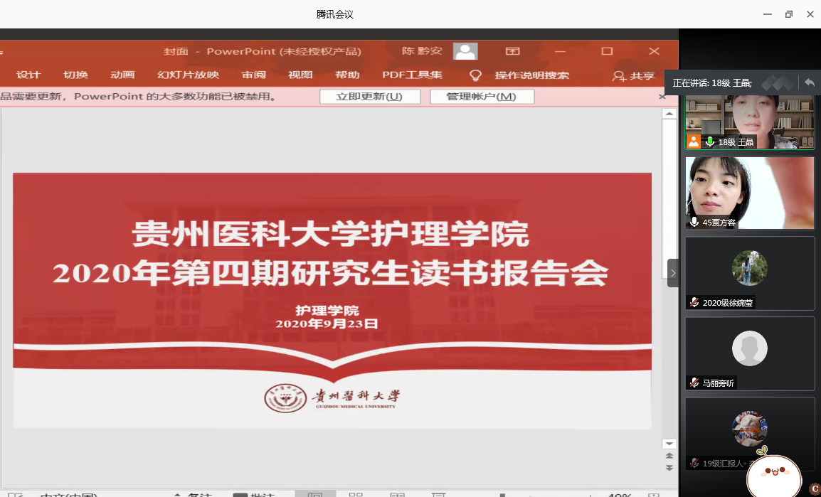 9月23日下午,美加墨世界杯官方网站2020年第四期研究生读书报告会以“云会议”形式进行,美加墨世界杯官方网站研究生导师、专业教师、研究生共计43人参加会议。