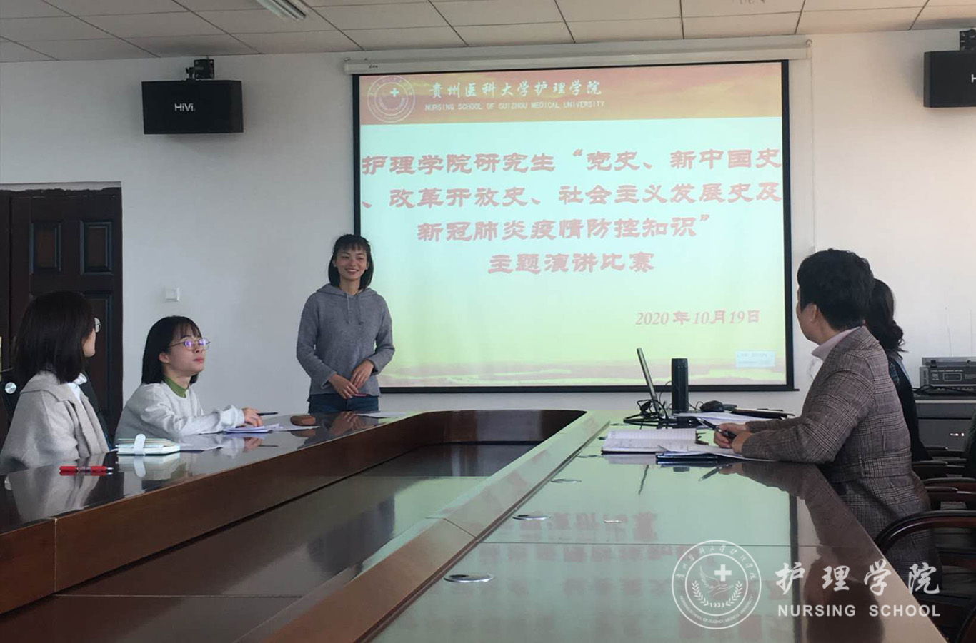活动中,吴晓艳同学以“知史爱国,知史爱党,以史鉴今”为主题,分享了自己从通过对党史的学习,以此指导自己的工作和学习。贵州第四批援鄂医疗队队员蔡小华同学以“在收获的季节里,我们不会忘记”为主题,结合新冠肺炎抗疫经历讲述了只有将个人的价值与集体的利益结合起来,生命价值才得以完美展现。吴洪苇同学以“壮烈红星,鲜红热血”为主题讲述了当我们面临着新冠疫情的巨大挑战,我们仍众志成城抗击新冠肺炎。庞冰、郭娟、贾方容、余丽红等几位同学也分别围绕主题作了充满激情的演讲。