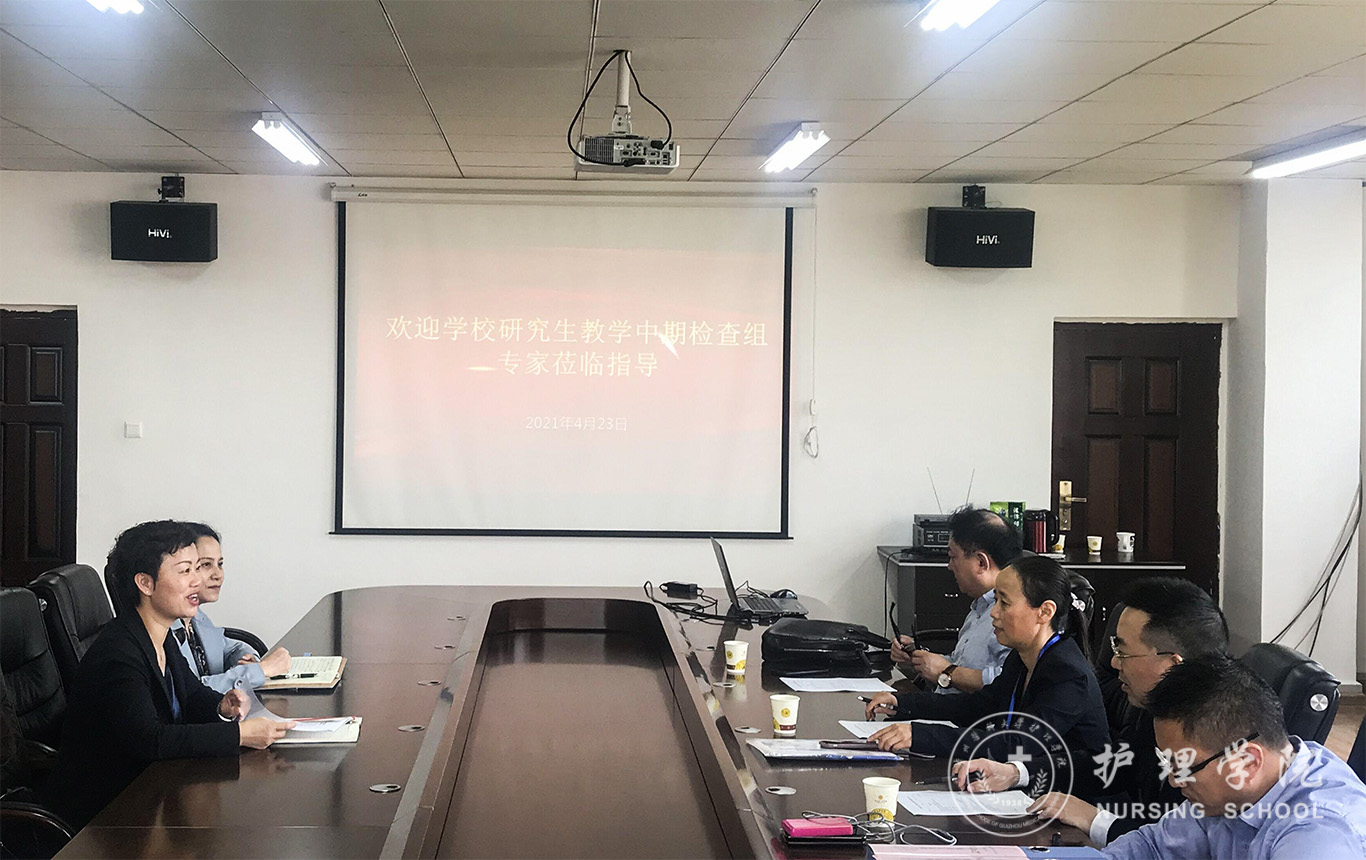 4月23日上午,学校研究生教学中期检查督导小组曹煜、蔡扬、潘卫东、彭吾训四位专家莅临世界杯官网检查研究生教学工作。党委书记杨英、副院长王秀红、各教研室教师、教学科研管理科全体成员、研究生辅导员等到场迎检。王秀红对各位专家的莅临指导表示热烈欢迎,并从学院研究生教学概况、自查工作情况、特色与亮点、存在的问题、下一步打算及建议等方面汇报了世界杯官网研究生教学目前的基本情况。杨英就世界杯官网学科建设发展中存在的短板做了补充,期待通过专家的把脉,帮助美加墨世界杯官方网站开出有效的药方,切实推动护理学研究生教育高质量发展。接下来督导专家对各教研室及教学科研管理科研究生教学管理资料进行现场检查。专家们对世界杯官网此次中期检查相关工作的组织给予了高度肯定,同时针对管理中的问题也提出了中肯的意见及建议。 王秀红表态一定认真梳理督导专家们提出的宝贵意见和建议,逐一整改落实,不断努力,以进一步提高世界杯官网研究生培养质量。