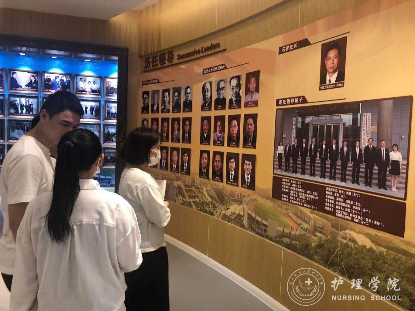 在校史馆中,沿着历史的长廊,李宗恩院长的塑像及历届校长的身影,长串遗体捐献者的名单,让同学们感受到了贵医开创者和前辈们的伟大;历届学子的照片由黑白变彩色,从几人、十几人到几十人的合照,历代贵医人艰苦育才的精神跃然纸上;从泛黄老旧的教科书到一代一新的各类教材,各种科研成果及奖状的展览,凝聚着贵医前辈的心血,也让同学们为能成为一名贵医人而骄傲。