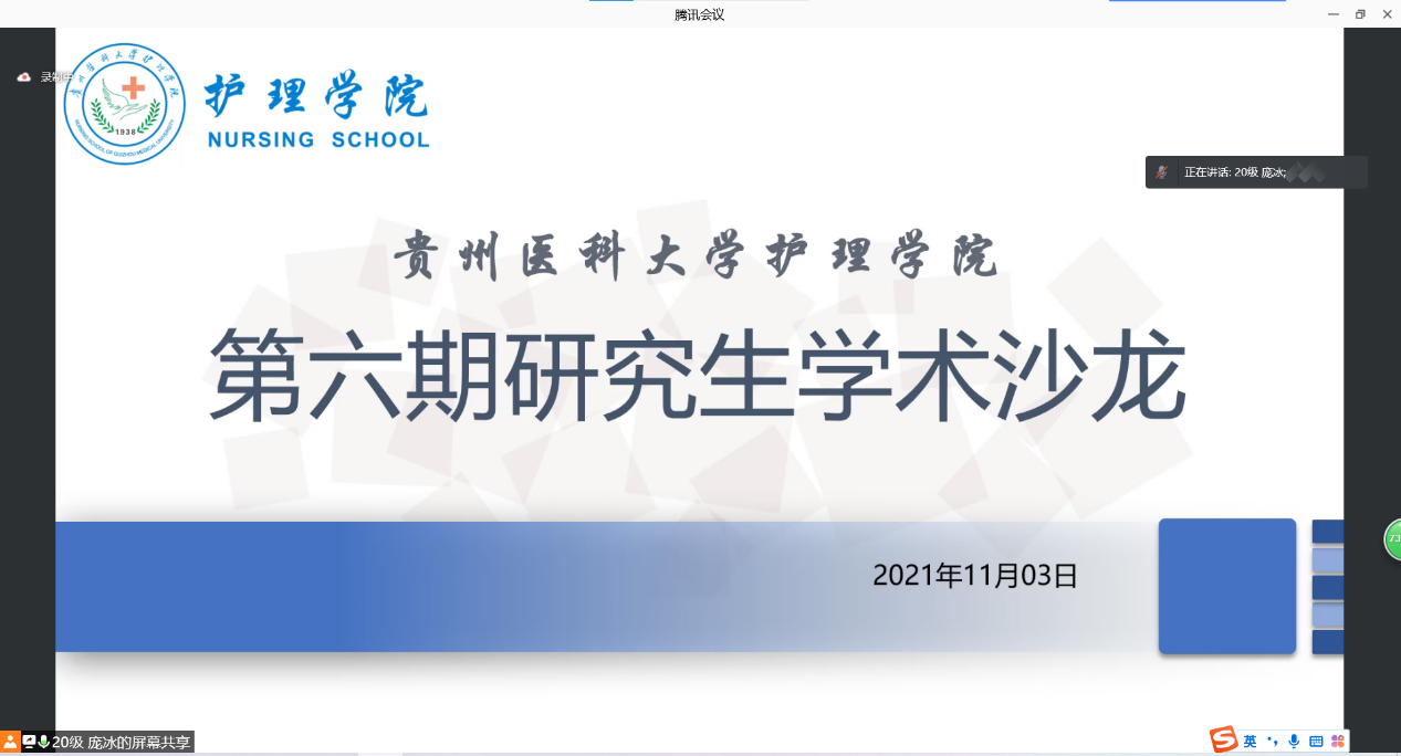 11月3日,美加墨世界杯官方网站在北校区行政楼10楼会议室举行第六期研究生学术沙龙。2020级研究生庞冰主持,2019级研究生李悦和2020级研究生游晶作为主要分享人就问卷设计及疾病风险预测模型进行分享。美加墨世界杯官方网站副院长王秀红、研究生导师蔡鹏、彭敏,副导师王芸芸、王先美,教师游贝贝、贾玉玲等以及全体研究生共计50余人通过线上或线下形式参加活动。