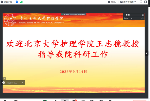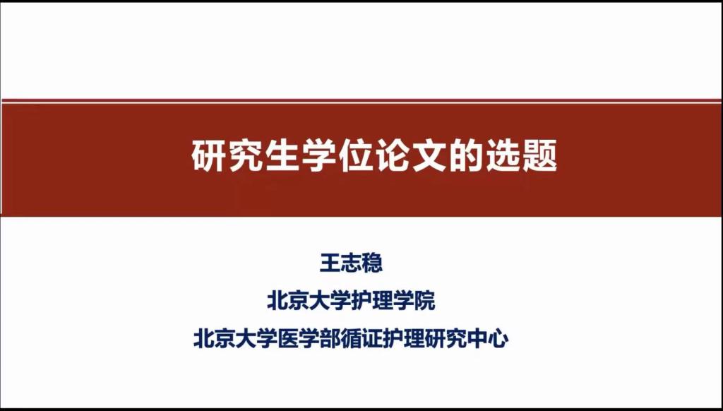 王志稳教授从研究生学位论文评审相关要求引入,结合自身丰富的科研经验,以研究实例为主线,从描述问题的现状及影响因素、探究机制及影响路径、研发风险预测模型、探究改善问题的方法:干预性研究、证据综合转化与应用研究等5个方面对护理学研究生论文选题进行了讲解。直观典型的案例及透彻明晰的分析让听者沉醉其中。讲授过程中王志稳教授对研究生培养过程中导师如何“导”,学生如何“学”也做了毫无保留的分享。专题讲座结束后,王志稳教授针对老师和同学们提出的问题逐一进行了解答和指导。