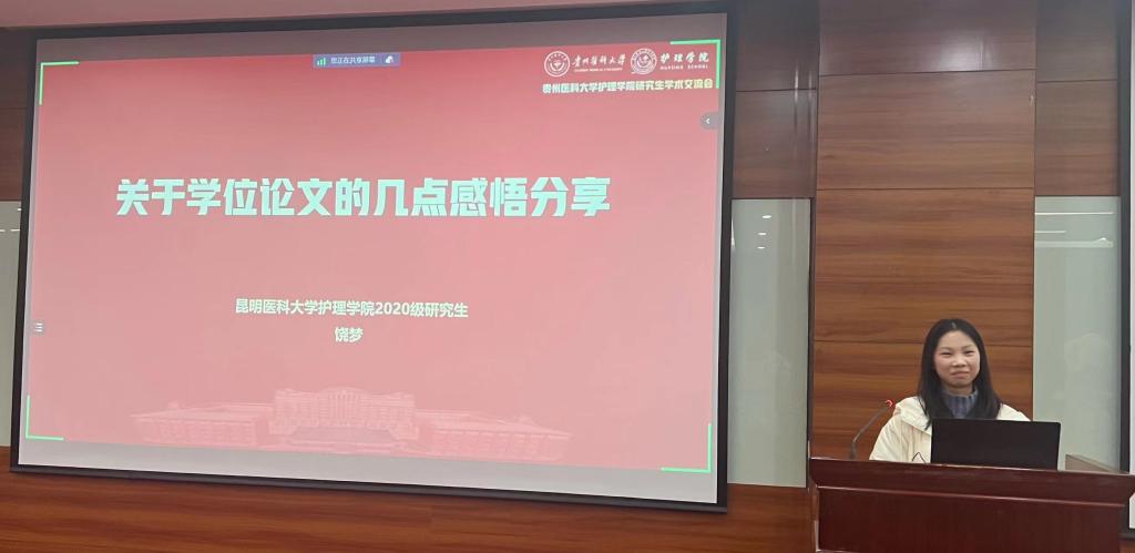 美加墨世界杯官方网站2016级本科校友、研究生毕业后考入我校附属医院工作的饶梦护师以“关于学位论文的几点感悟分享”为题,分享自己所获“全国护理学研究生高质量学位论文”的感悟,为在座师生详细介绍了硕士学位论文前期的文献阅读、论文的选题、论文的前言、方法、结果及讨论等各部分的写作规范。