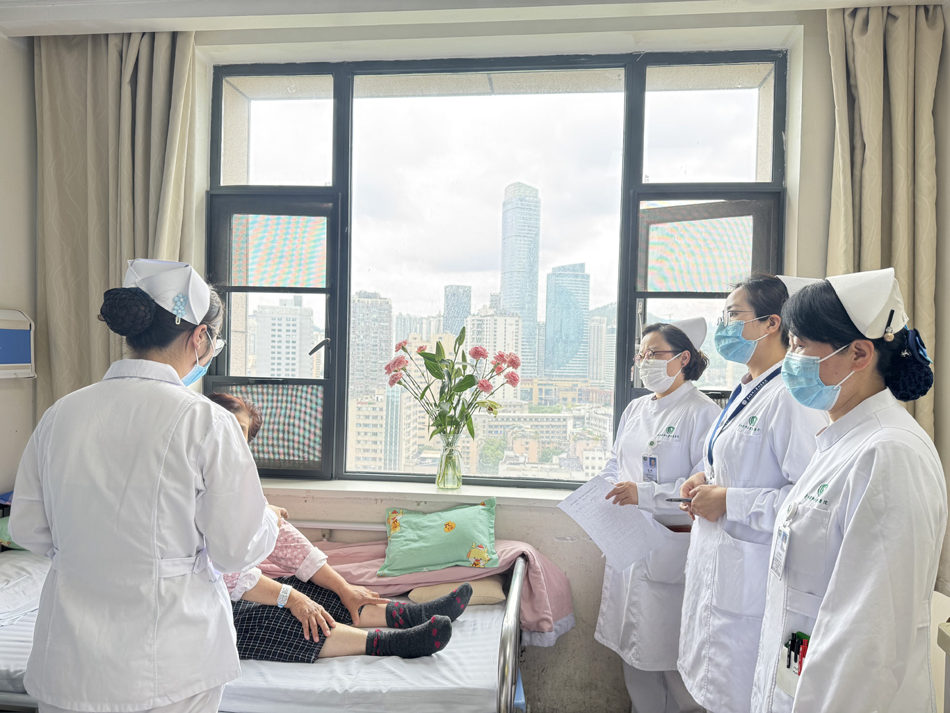 本次考核以“考中带教、教中促评”为原则,将教学资源有效嵌入临床考核场景。研究生在真实临床环境中展示操作技能和理论运用能力,同时通过病例讨论、护理教学查房等教学实践环节,综合考察其临床教学设计、师生互动引导与医护患协作等能力,全面检验其教学思维与临床能力的融合水平。