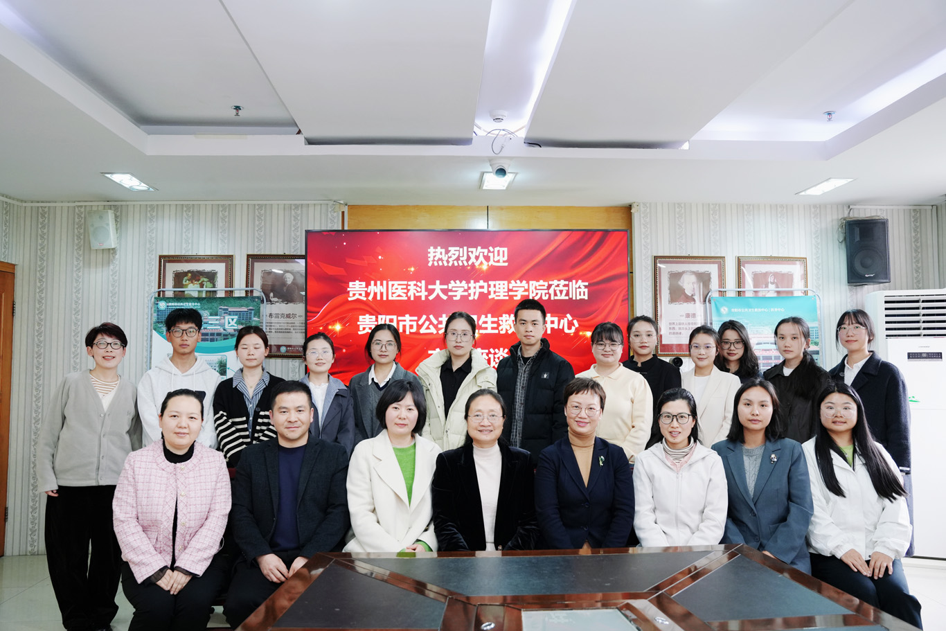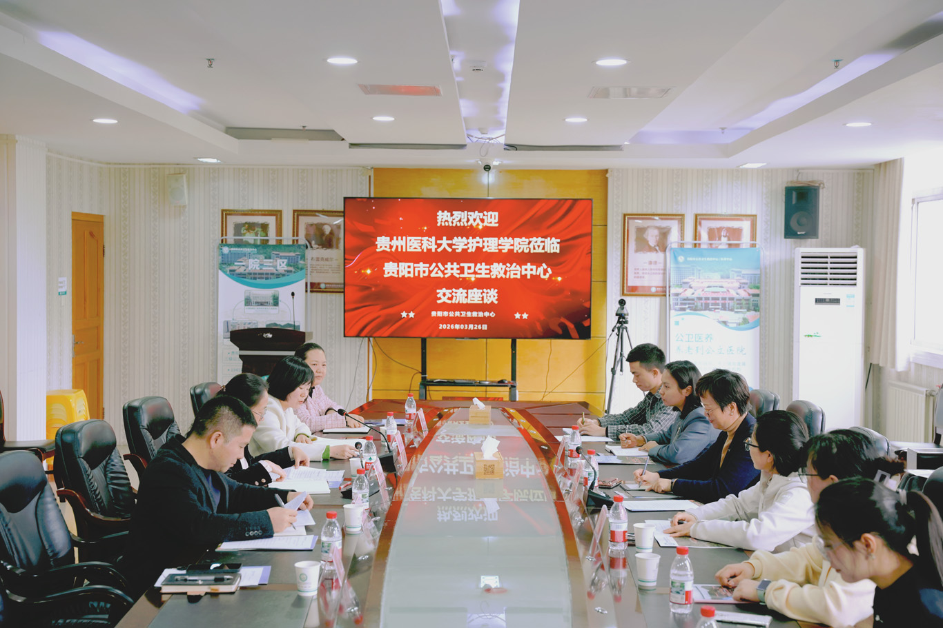 为深化医教协同融合,扎实推进访企拓岗促就业,加强校院联动,3月26日,美加墨世界杯官方网站院长王秀红,学生管理科副科长毕丽,辅导员殷艳以及10余名研究生代表赴贵阳市公共卫生救治中心开展交流座谈。贵阳市公共卫生救治中心副院长张江萍、护理部副主任卢芳、人事科科长刘波、宣传科科长周扬、片区护士长李吉及护理部研究生王兆北、李光辉参加座谈。会议由卢芳主持。