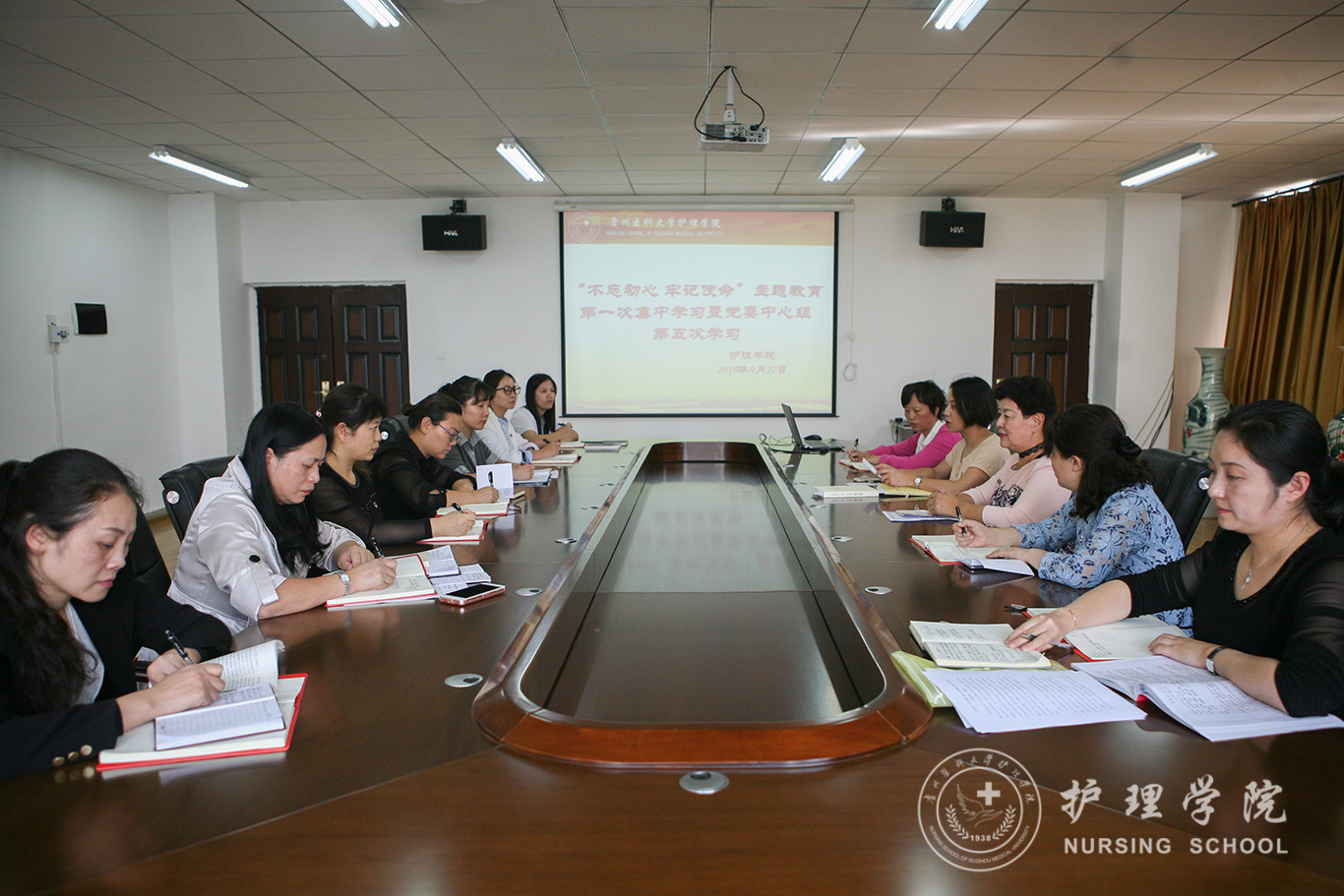 杨英围绕学习内容作了题为《不忘初心、牢记使命——全面从严治党》的中心发言。美加墨世界杯官方网站党委副书记王秀红、副院长刘志燕进行了交流发言。组织员曾敏、妇儿科护理教研室副主任刘林敏分别作了学习发言。