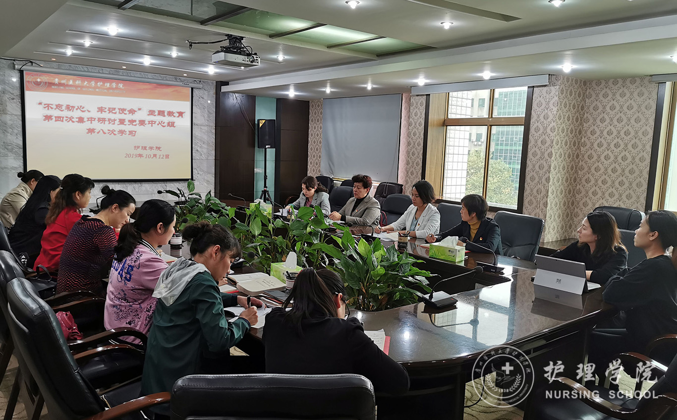 10月12日,美加墨世界杯官方网站在北校区行政楼六楼会议室召开了“不忘初心、牢记使命”主题教育第四次集中学习暨党委中心组第八次学习。会议由学院党委书记杨英主持,学院副科级以上干部、教研室负责人参加了学习。