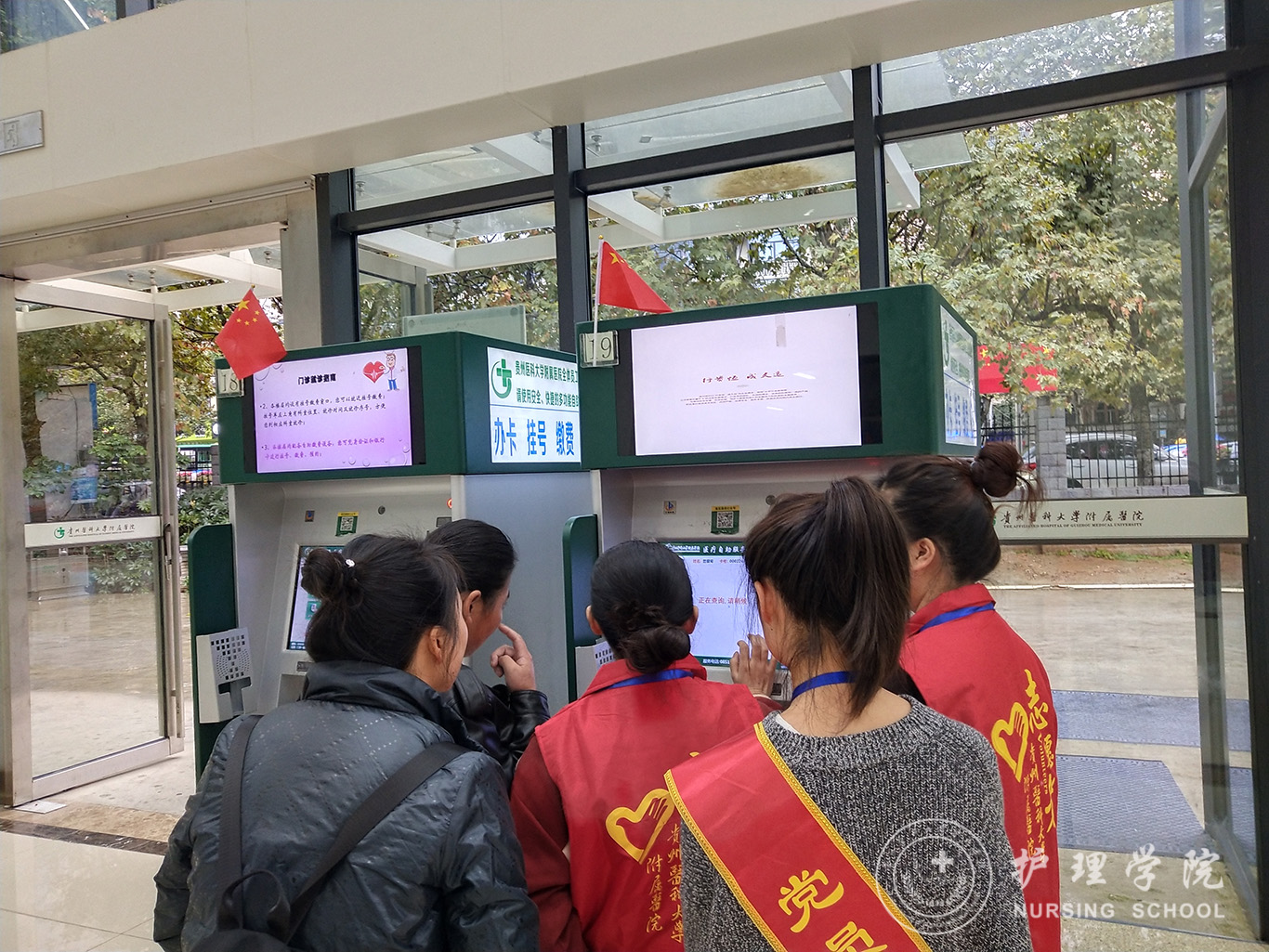 在祖国70华诞之际,为深入开展“不忘初心、牢记使命”主题教育,弘扬“奉献、友爱、互助、进步”志愿者服务精神,更好地传承南丁格尔精神,服务人民卫生健康事业。10月26日,美加墨世界杯官方网站学生第一党支部党员志愿者前往贵医附院门诊部开展志愿服务活动。
