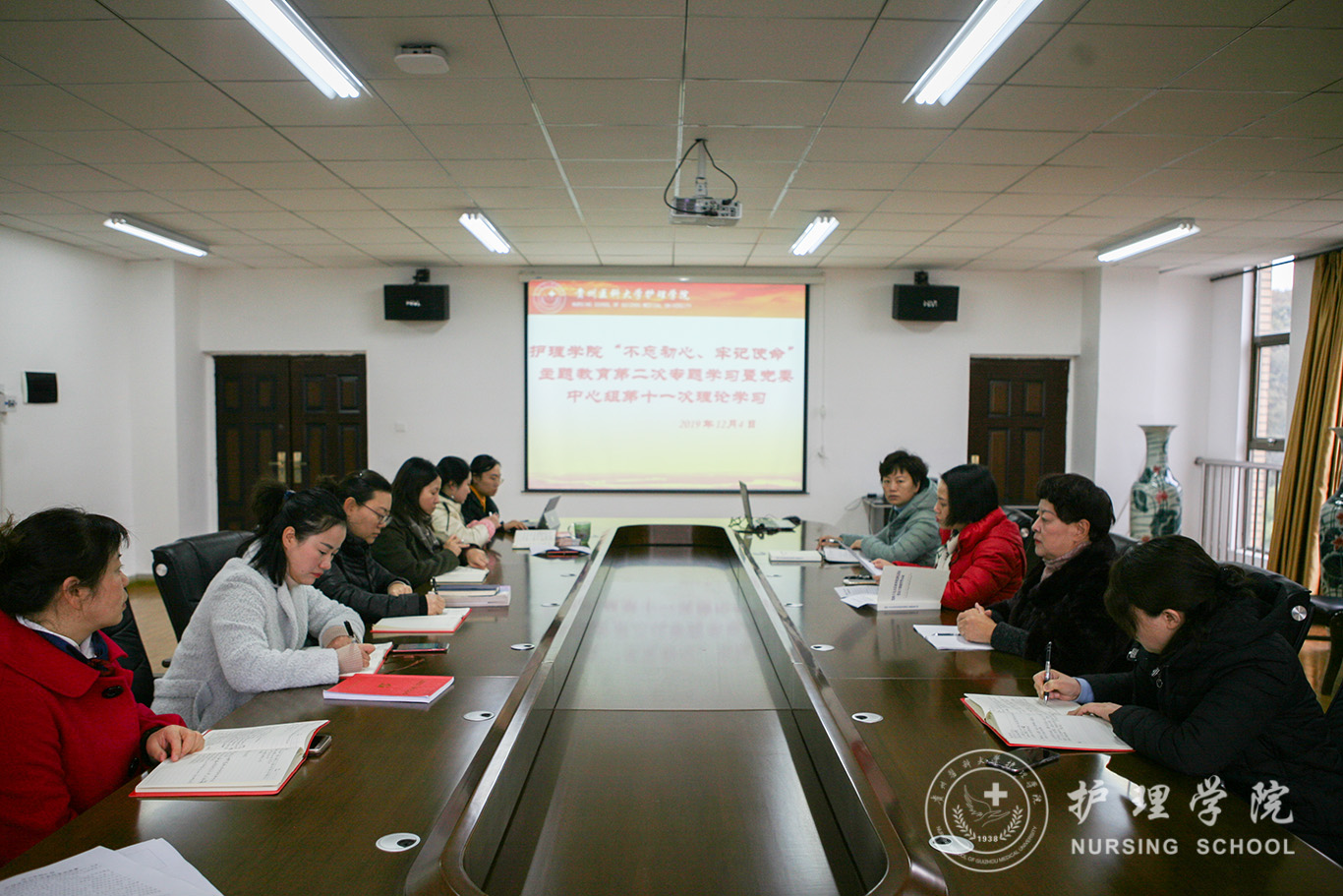 12月4日,美加墨世界杯官方网站在南校区百川楼五楼会议室召开了“不忘初心、牢记使命”主题教育第二次专题学习暨党委中心组第十一次理论学习。会议由党委书记杨英主持,学院副科级以上干部、教研室负责人参加了学习。