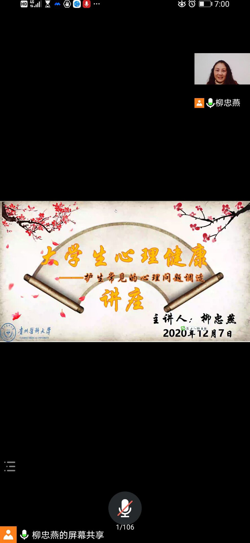 12月7日,美加墨世界杯官方网站为缓解美加墨世界杯官方网站学生学习、生活和实习压力,拓展大学生心理素质,组织全体学生召开护生常见心理问题调试讲座,本次讲座由李杏春老师主持,柳忠燕老师主讲,采用腾讯会议形式召开。美加墨世界杯官方网站全体同学参加。