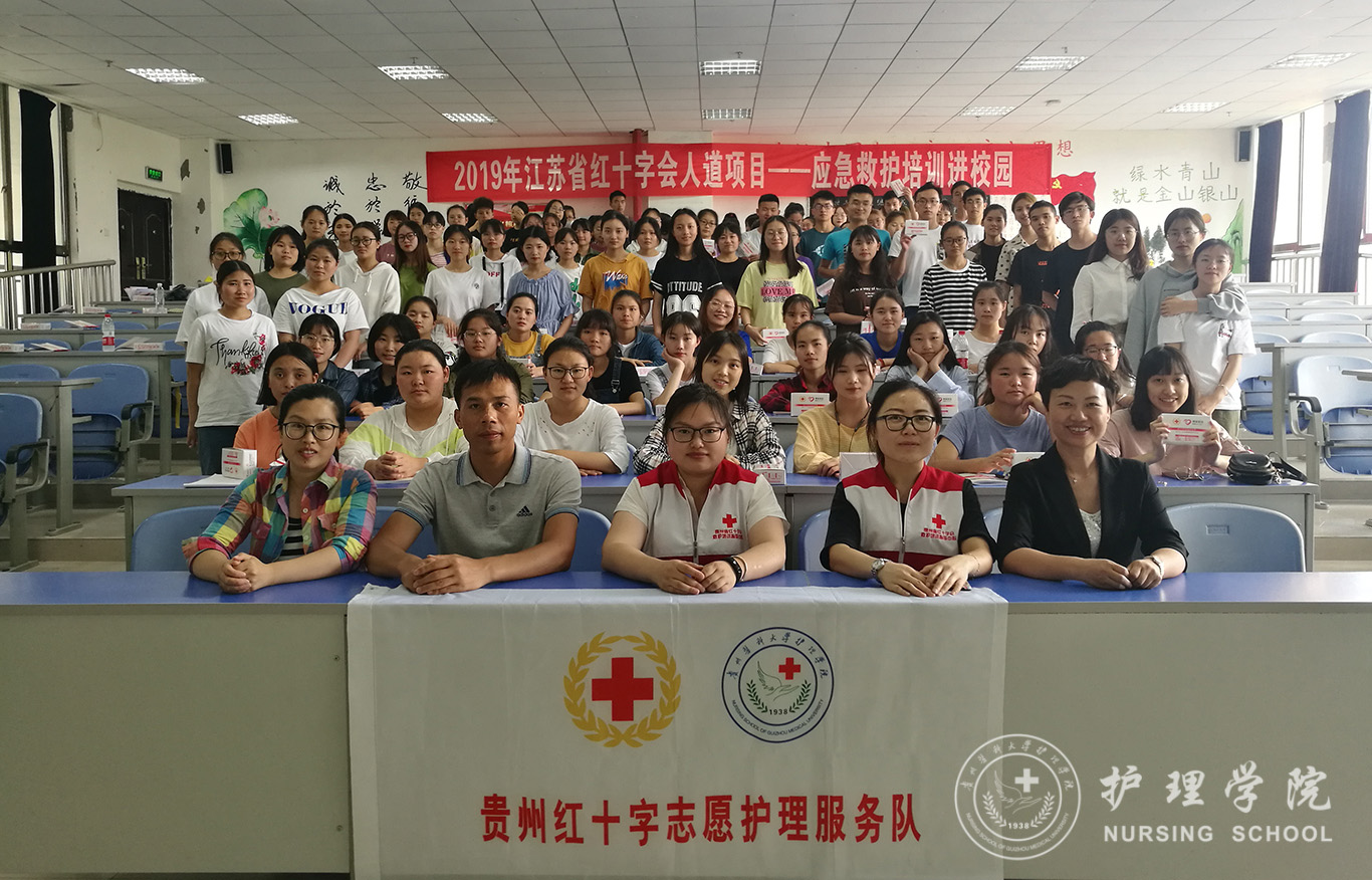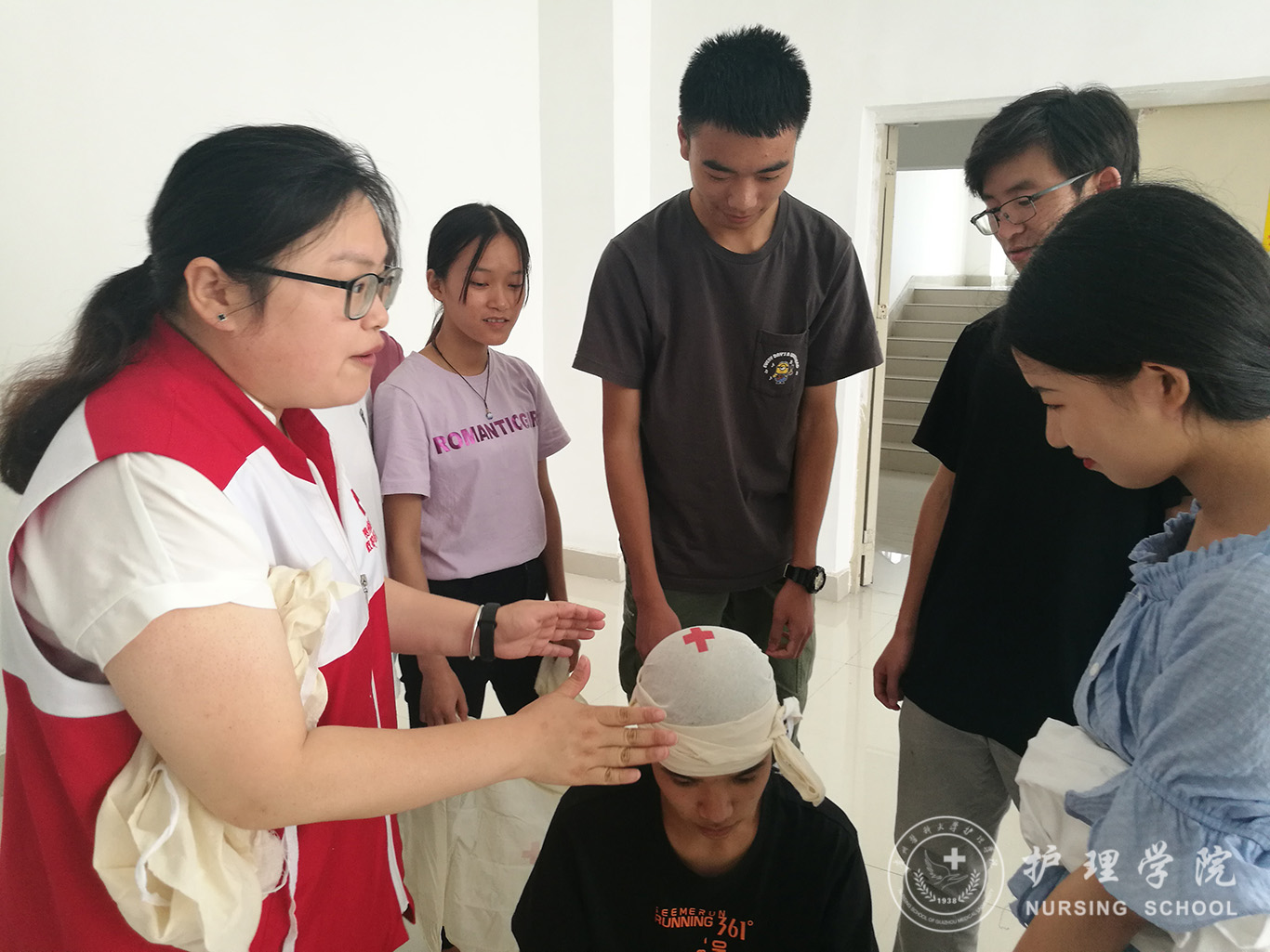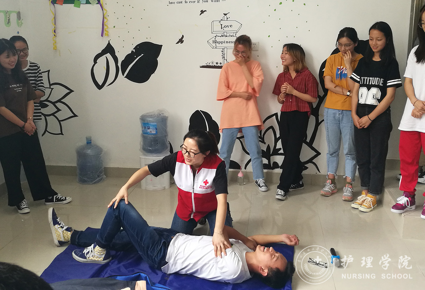6月29日,由江苏省红十字会、贵州省红十字会、校团委、校红十字会及美加墨世界杯官方网站“贵州红十字护理志愿服务队”共同组织的“青春健康‘救’在身边”——红十字急救员培训在我校南校区广德楼1204教室举行。美加墨世界杯官方网站党委副书记王秀红、辅导员毕丽、校团委宋科伟以及来自美加墨世界杯官方网站和各学院的101名学员参加本次培训活动。此次培训由贵州省红十字会两位老师全程授课指导。