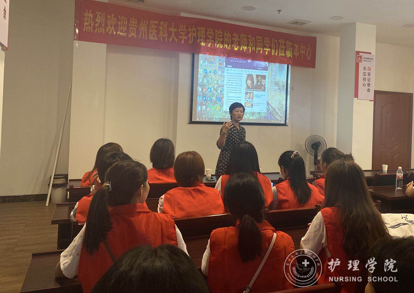 上午9时整,简短而热烈的活动启动仪式正式开始。首先主持人熊吴燕介绍了参加仪式的领导和来宾,接下来中心负责人游世先转达了中心上级主管部门贵阳钢厂职工医院党总支书记丁晓燕及院长龙奕对活动开展的祝贺和希望,并以PPT形式给大家介绍了日照中心的创建发展概况。熊吴燕从专业学习的角度给同学们讲述了活动的意义。她说,我们在中心开展志愿服务,同时也是《老年护理学》见习教学内容之一,希望同学们在活动中认真思考,探索问题,发现问题,并找到解决问题的方法,学好这门课程,更好的为老年人服务。最后,王秀红副书记对贵阳钢厂职工医院及中心领导的大力支持表示衷心感谢,并从珍惜、坚持、安全三个方面对同学提出要求。她说,医学人文关怀素养是医学生非常重要的专业素养。人文关怀素养的培养要立足于服务社会,在结合专业知识运用的志愿服务中提升和实践,希望同学们珍惜宝贵的学习实践机会,通过每个周末课余在中心的志愿服务去领悟、去提升自身专业能力和人文关怀素养,最终成长为一名优秀的人民健康卫士。其次,志愿服务和专业学习都是需要长期坚持才能最终开出绚丽花朵的事情,同学们牺牲休息时间来中心陪伴老年人、增加对专业知识的认知和了解社会是需要有所付出的,希望同学们能够克服困难,坚持高标准自觉参与完成任务。最后,希望同学们遵守纪律、服从管理,注意自身安全和老人安全,确保学有所获。