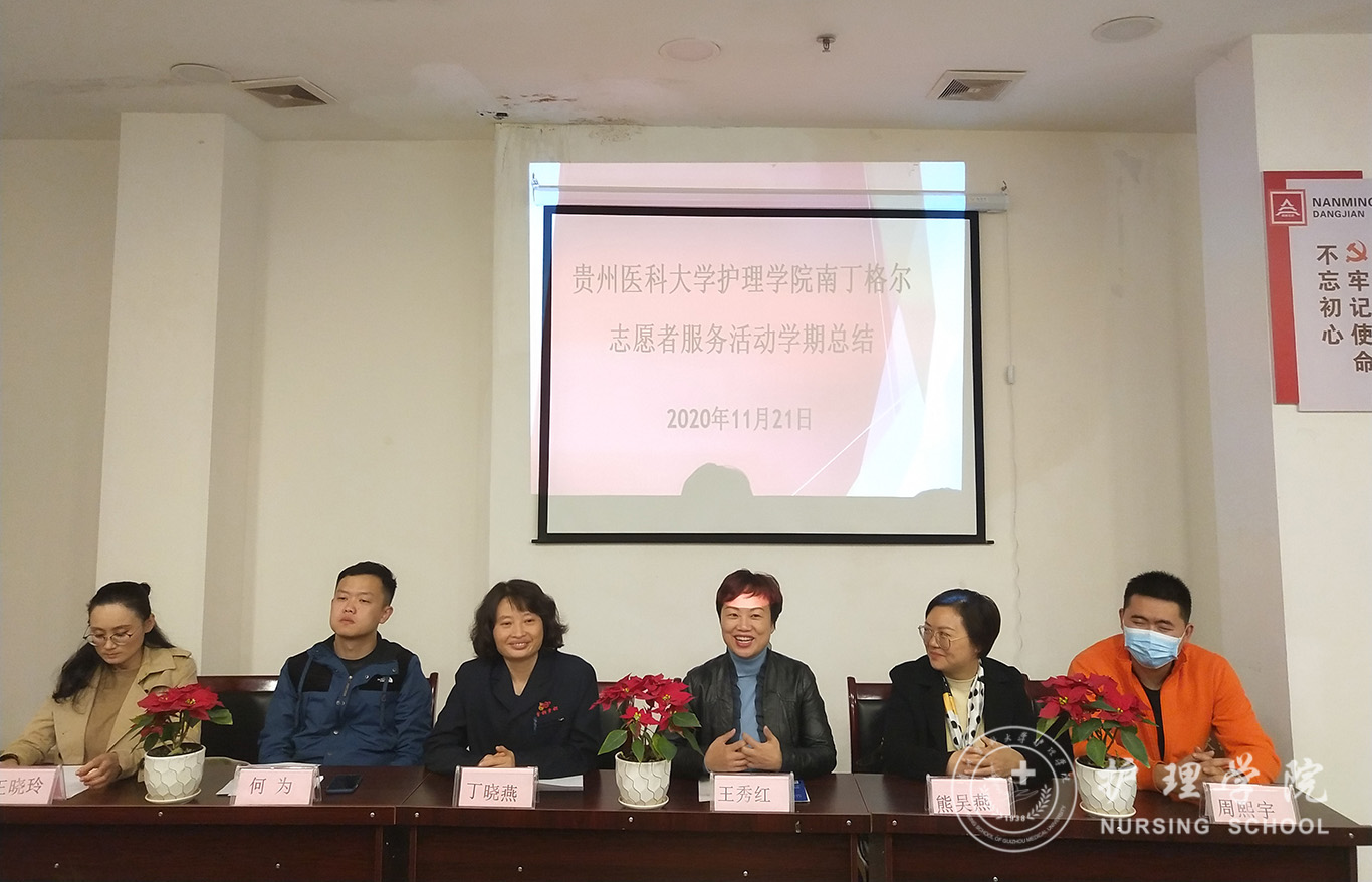 11月21日上午,美加墨世界杯官方网站暨中国南丁格尔志愿服务队美加墨世界杯官方网站分队“为老志愿服务”学期总结会议在贵阳市南明区油榨街道晚霞彩带老年人日间照料中心举行。贵钢医院党总支书记丁晓燕,美加墨世界杯官方网站党委副书记何为,美加墨世界杯官方网站党委委员、副院长、中国南丁格尔志愿护理服务队美加墨世界杯官方网站分队队长王秀红,中心经理周熙宇,护理学基础教研室副主任熊吴燕,美加墨世界杯官方网站分团委副书记王晓玲,2018级护理学、助产学同学代表参加了此次会议,会议由王晓玲主持。