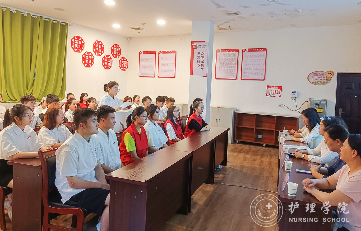 6月27日,美加墨世界杯官方网站在贵阳市油榨街社区晚霞彩带老年人日间照料中心召开南丁格尔志愿服务活动总结大会,贵钢医院党总支书记、日照中心法人代表丁晓燕,美加墨世界杯官方网站副院长王秀红,护理学基础教研室副主任熊吴燕,教师肖霓、王芸芸、王先美及美加墨世界杯官方网站护理学、助产学2018级学生代表参加了本次大会,会议由熊吴燕主持。
