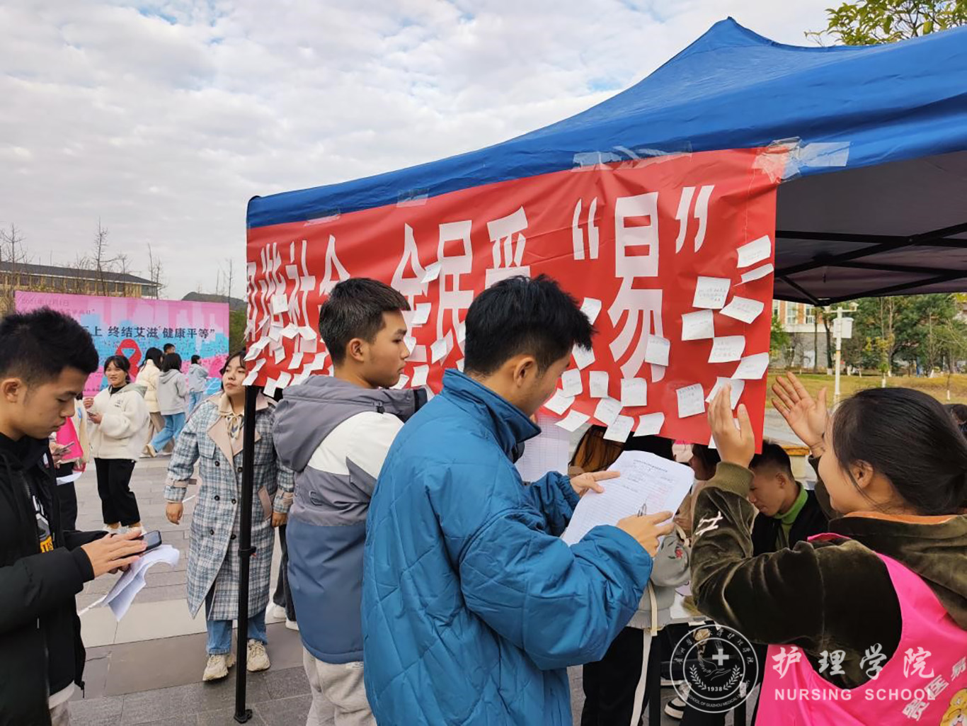 12月1日,为进一步提高同学们对艾滋病的预防和危害的认知度,正确引导“知艾防艾”,美加墨世界杯官方网站易班分站下午16:00至18:00在一食堂门口小广场开展了“防治艾滋病,人人有责,构建和谐社会,全民受‘易’”主题活动。参加本次活动的人员有辅导员兰光倩,美加墨世界杯官方网站易班分站所有成员及各年级各班级同学。