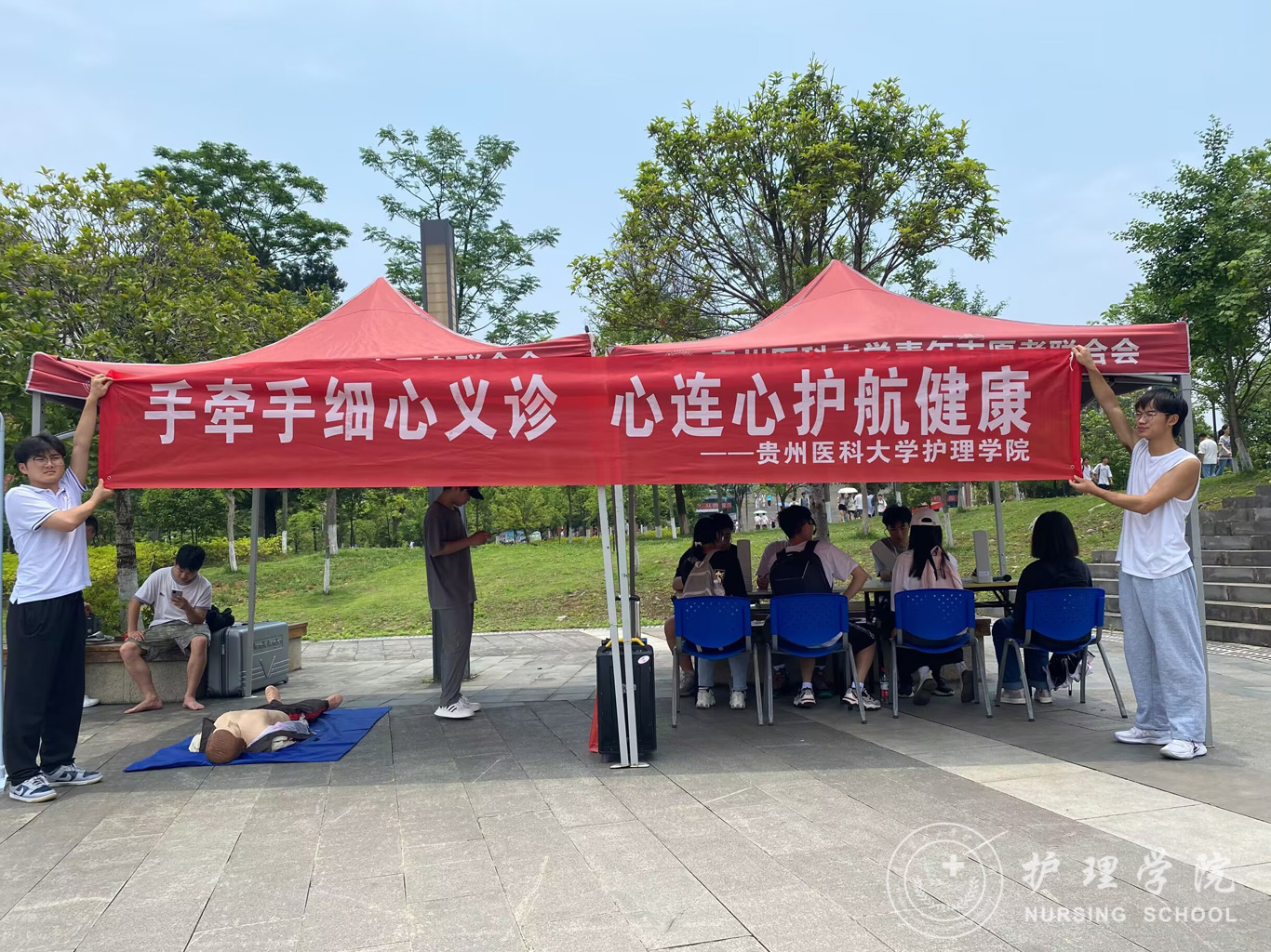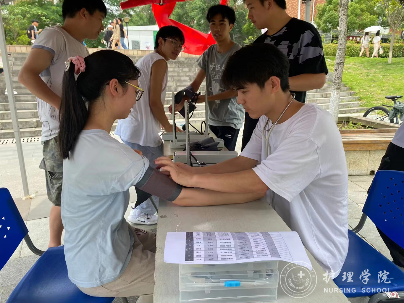 6月2日,为深入学习贯彻党的二十大精神,在学习贯彻习近平新时代中国特色社会主义思想主题教育中落实“健康中国”战略,加强在校大学生急救知识技能知识学习,提高自救互救能力,美加墨世界杯官方网站男护生协会与美加墨世界杯官方网站护理技能协会在南校区一食堂小广场联合举办了“手牵手细心义诊,心连心护航健康”急救知识技能培训活动,活动面向全校同学开展。