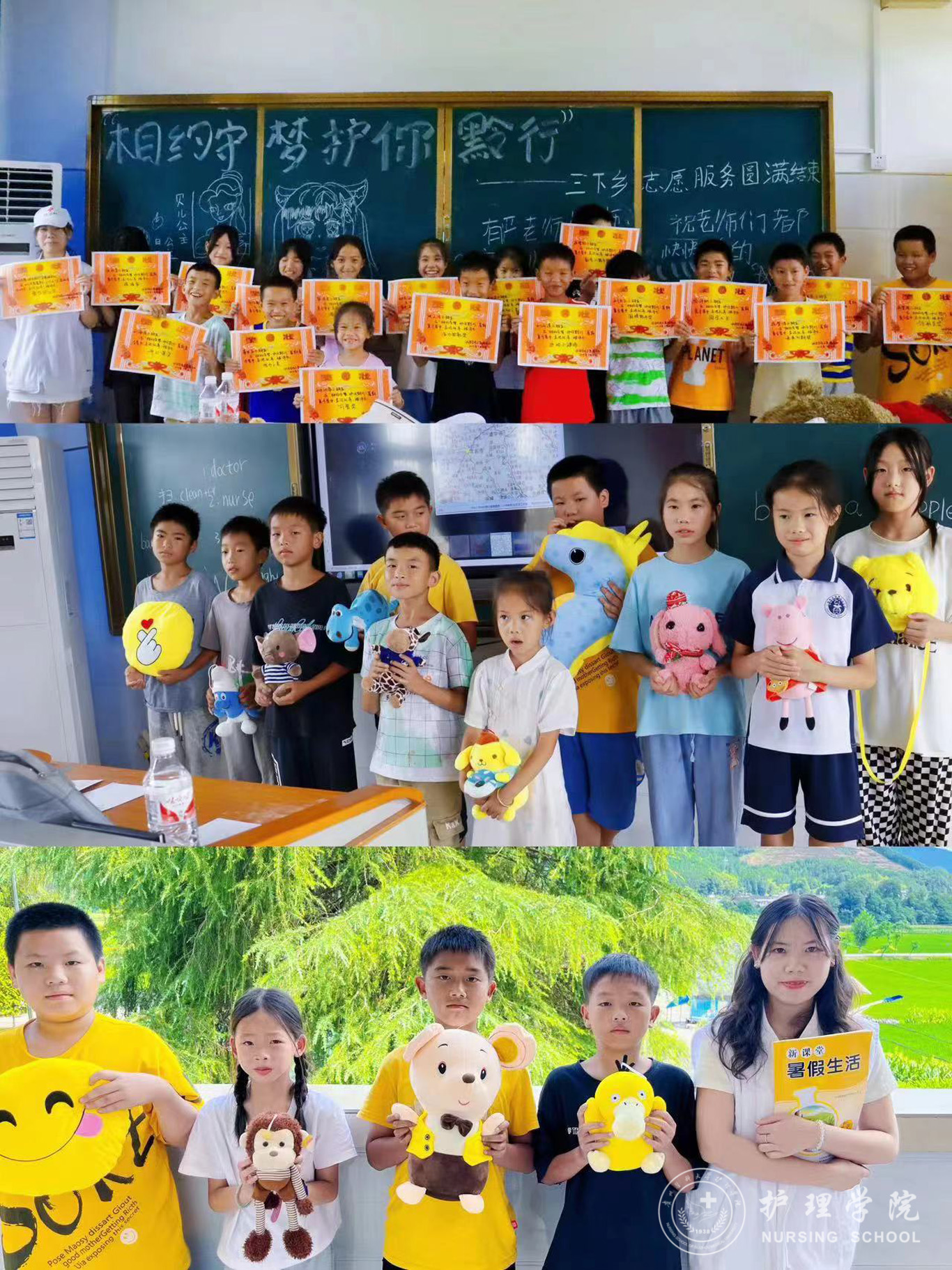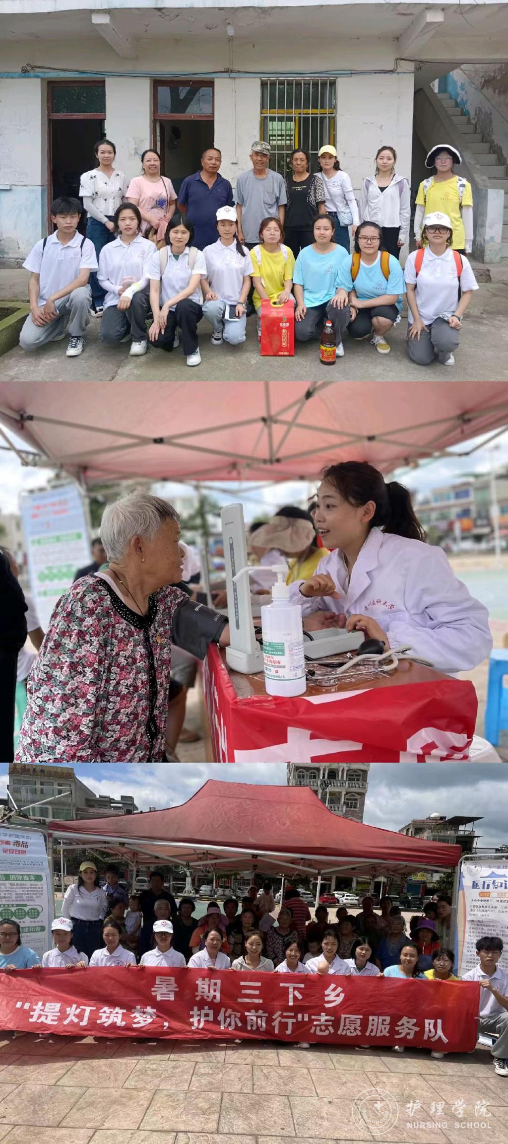 青衿之志,履践致远,就像习近平总书记所说的那样:"广大青年既是追梦者,也是圆梦人。追梦需要激情和理想,圆梦需要奋斗和奉献。"在此次“三下乡”社会实践活动中,各志愿服务队走出校园,走向社区、服务机构、农村等,深入基层群众,以护理学子热情饱满的精神面貌,认真负责的工作态度以及扎实过硬的专业本领为乡村振兴做出应有的贡献,彰显了护理学子的青年担当。各团队纷纷表示,通过此次活动深刻地认识到了大学生暑期“三下乡”社会实践的意义所在,希望将来能在奉献中担当使命、在历练中增长本领,努力投身健康中国行动,积极推动中国式现代化建设,在砥砺前行中,不断展现青年智慧、凝聚青年力量、传承青年使命,在为人民服务的事业当中绽放属于自己青春最绚丽的花朵。