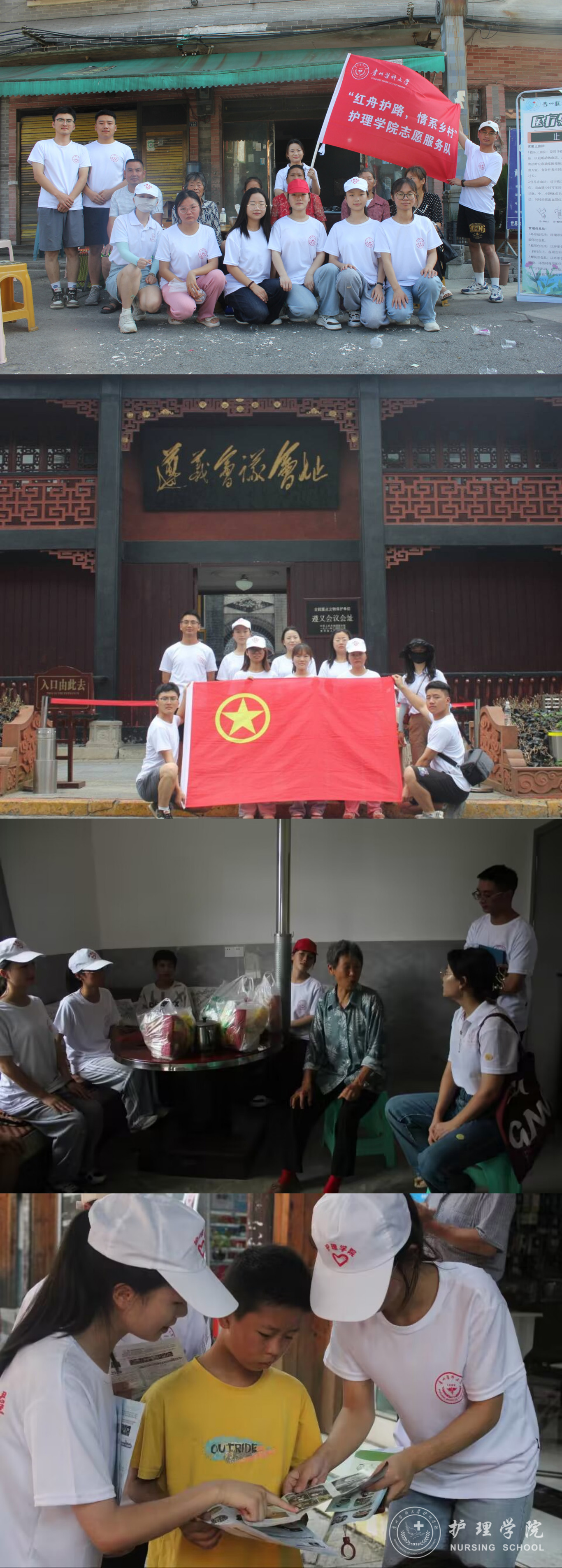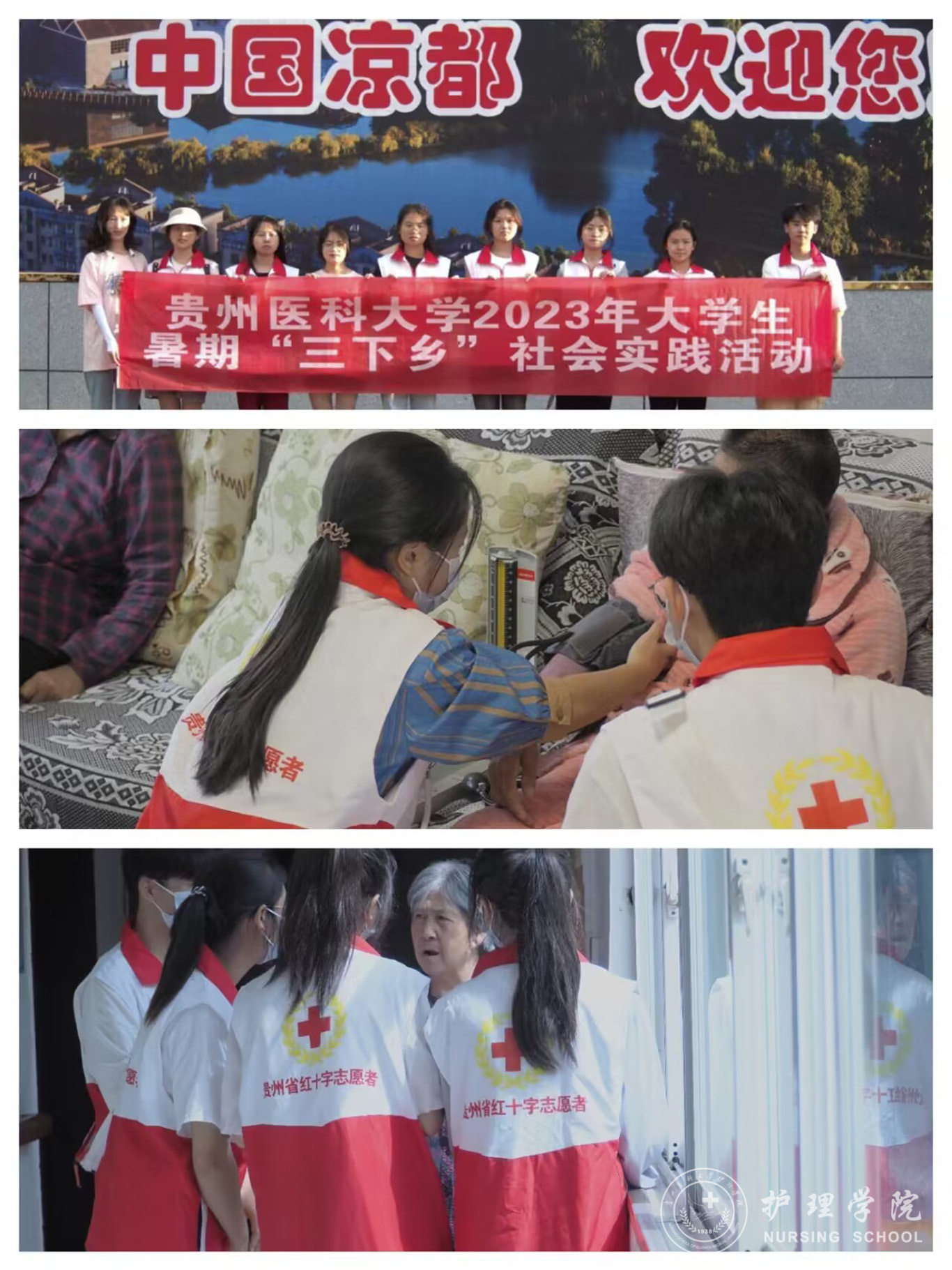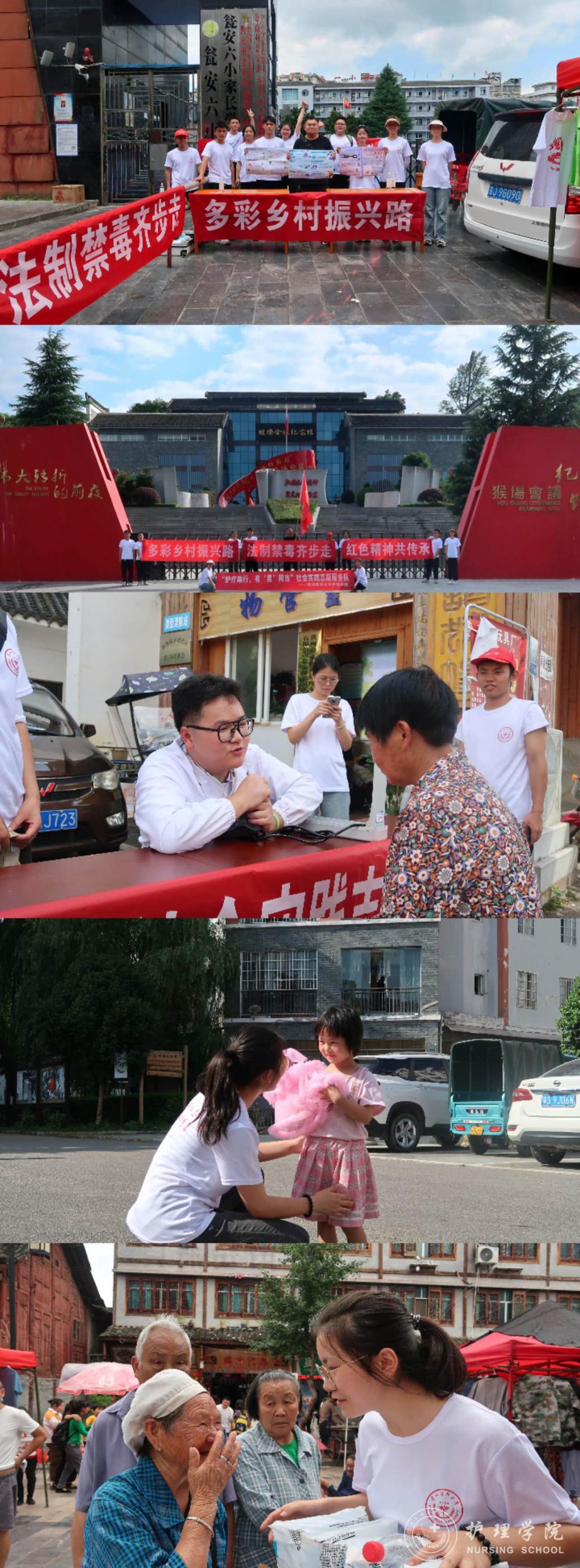 7月10日至7月22日,为增强大学生社会责任感,提升学生的创新能力和实践经验,推动乡村振兴、传承红色精神,美加墨世界杯官方网站响应我校团委号召,组织师生积极参与大学生暑假“三下乡”社会实践活动,此次活动世界杯官网组成11支大学生暑期“三下乡”社会实践服务队,参与师生共100余人,分别前往贵阳市、安顺市、六盘水市、遵义市、毕节市、都匀市、黔东南州三橞县、黔南州瓮安县等地区进行了志愿服务。美加墨世界杯官方网站副院长王秀红、副处级组织员张黎、团委副书记王晓玲、学生科副科长毕丽、护理学基础教研室教师肖霓及辅导员刘妍、兰光倩、刘文壮、殷艳、梁子豪作为指导老师参与了此次志愿服务。