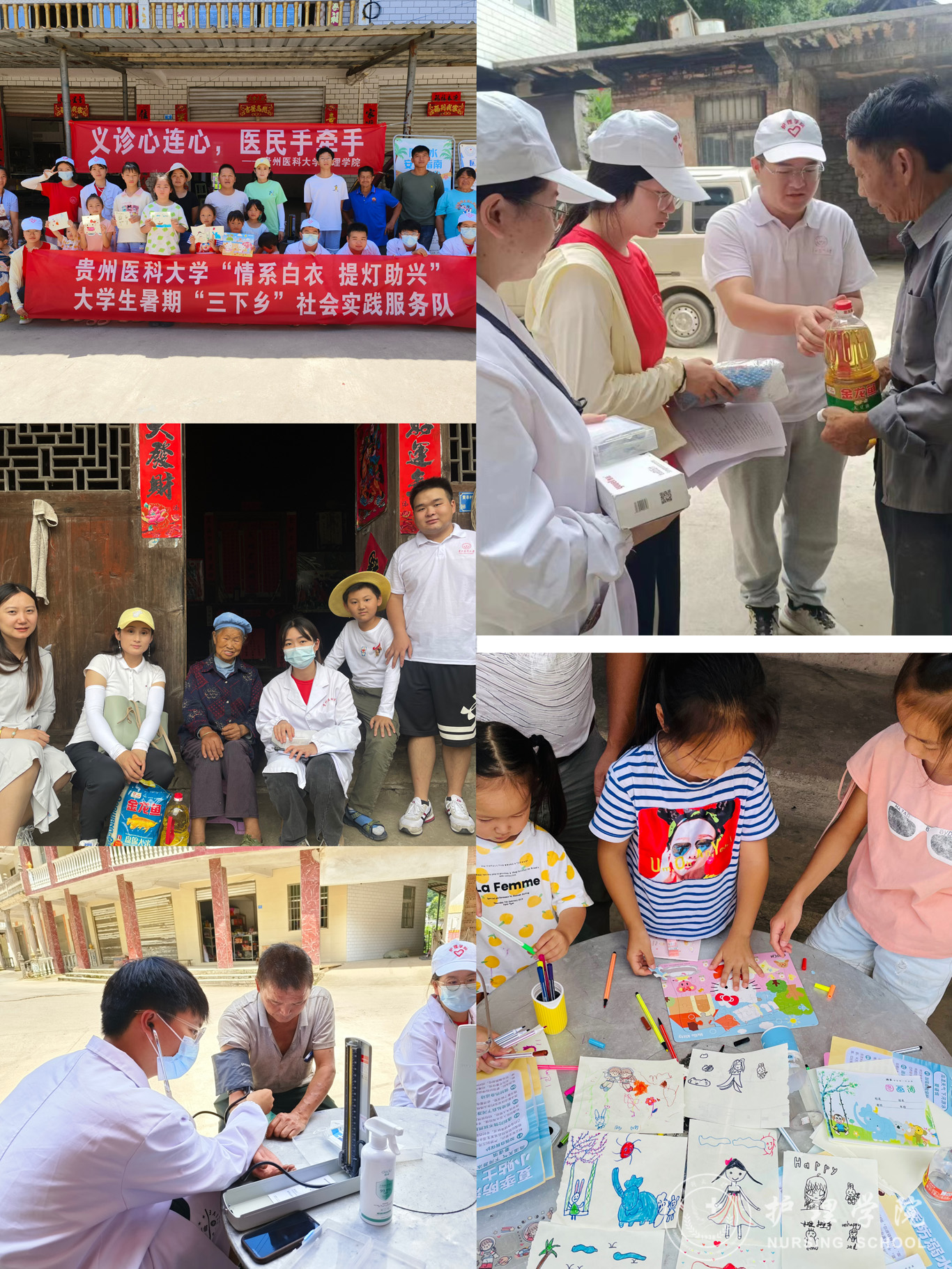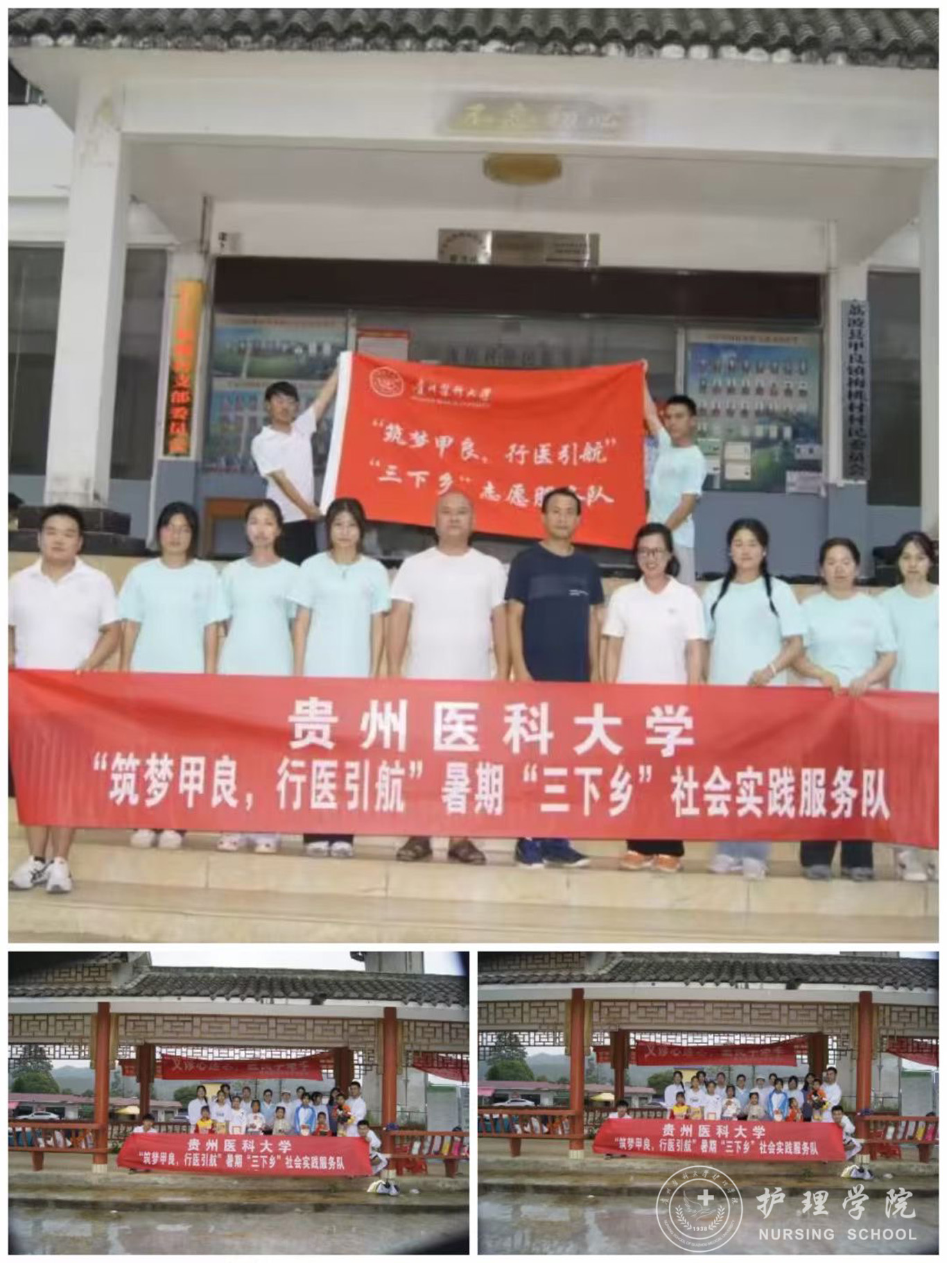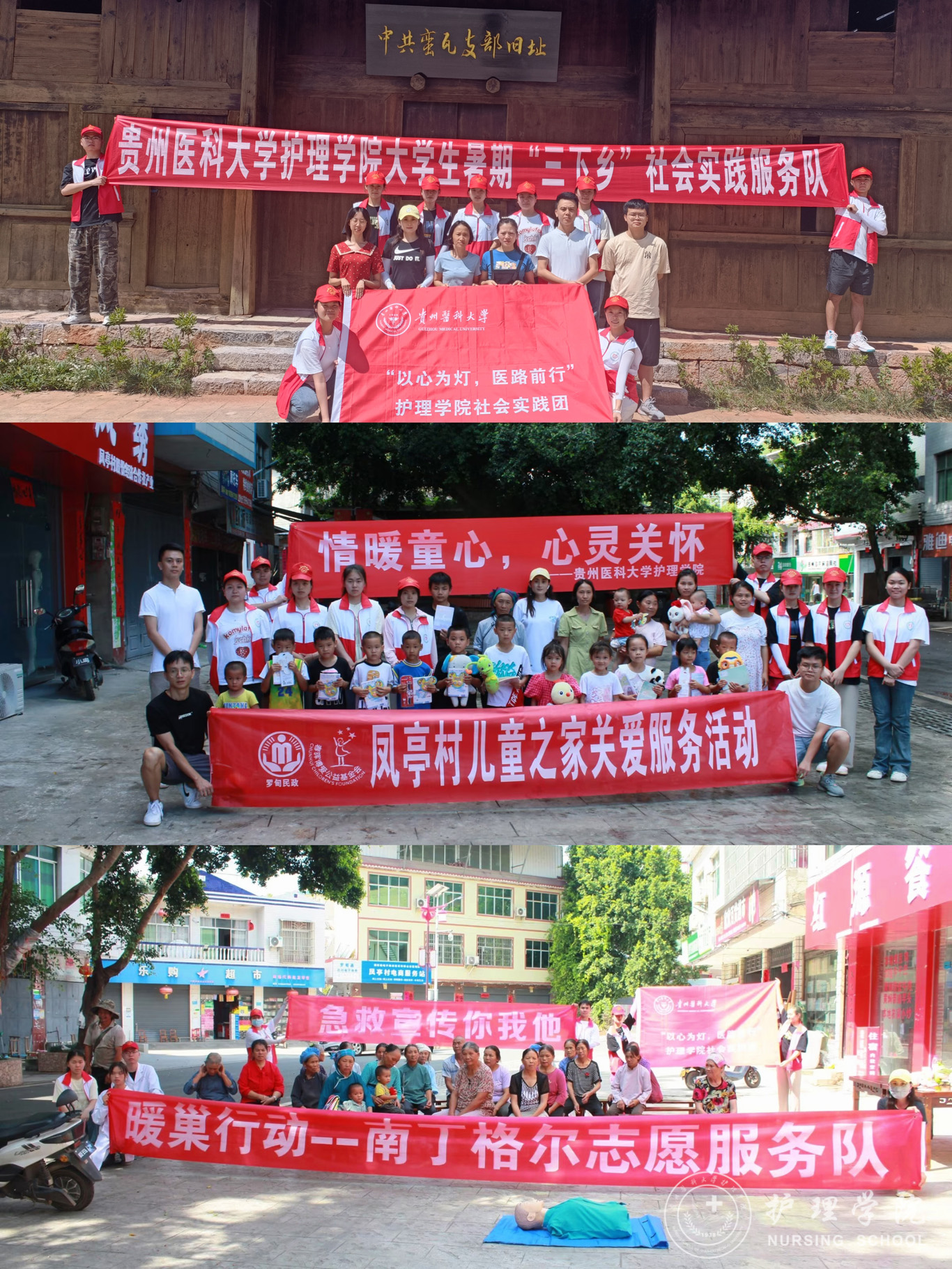 7月10日至7月22日,为增强大学生社会责任感,提升学生的创新能力和实践经验,推动乡村振兴、传承红色精神,美加墨世界杯官方网站响应我校团委号召,组织师生积极参与大学生暑假“三下乡”社会实践活动,此次活动世界杯官网组成11支大学生暑期“三下乡”社会实践服务队,参与师生共100余人,分别前往贵阳市、安顺市、六盘水市、遵义市、毕节市、都匀市、黔东南州三橞县、黔南州瓮安县等地区进行了志愿服务。美加墨世界杯官方网站副院长王秀红、副处级组织员张黎、团委副书记王晓玲、学生科副科长毕丽、护理学基础教研室教师肖霓及辅导员刘妍、兰光倩、刘文壮、殷艳、梁子豪作为指导老师参与了此次志愿服务。