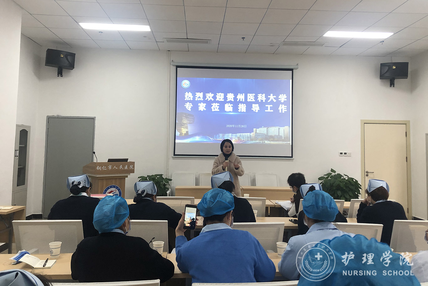 为了进一步掌握2017级护理学专业本科毕业实习情况,保障教学质量,11月2日至12月1日,世界杯官网在美加墨世界杯官方网站党委书记杨英的带领下,巡回教学组一行对美加墨世界杯官方网站附属医院、第二、第三附属医院、附属肿瘤医院、附属白云医院、附属人民医院、附属兴义医院、附属安顺中心医院、附属铜仁医院、附属妇女儿童医院、黔南州人民医院、贵阳市第四人民医院、贵航贵阳医院等各实习基地进行了巡回教学、教学质量督导检查及就业指导工作。