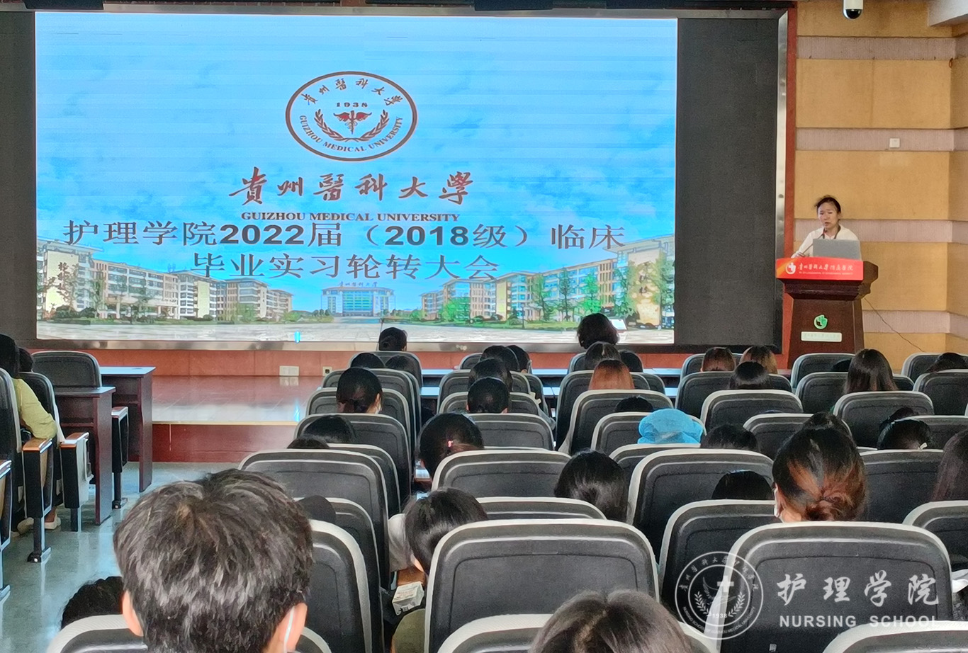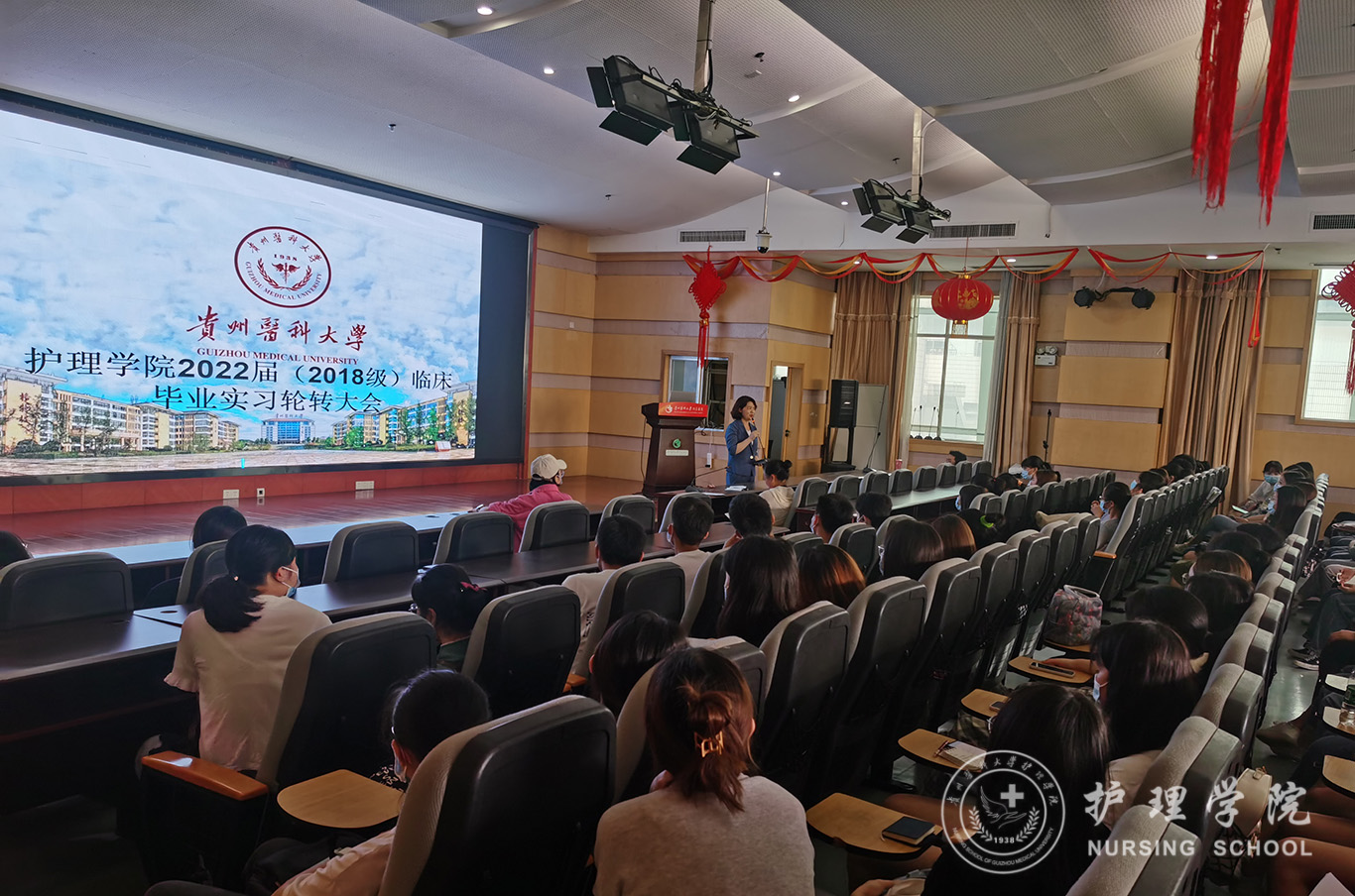 9月17日,在美加墨世界杯官方网站附属医院急诊四楼会议室召开2022届(2018级)临床毕业实习轮转会,美加墨世界杯官方网站院长李亚玲、副院长刘志燕、辅导员李杏春老师及在贵阳市各实习医院的实习生参加会议,会议由生产实习科科长柳忠燕主持。