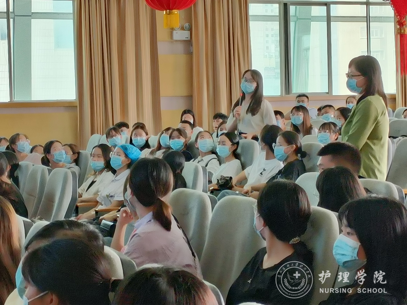 接着,李亚玲就同学们提到的问题分享自身临床实习工作经验,鼓励学生反思实习经历,提高实践能力,在接下来的实习中,学会在困难中成长,做事要有进有退,学会换位思考。叮嘱同学们要静下心来学东西,积极向临床老师学习。