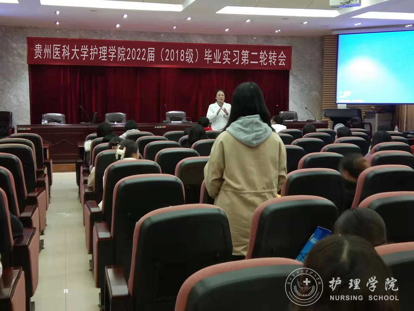 为更好地解决同学们在实习过程中遇到的困难和问题,让同学们的实习更加顺利,11月26日,美加墨世界杯官方网站在北校区道德讲堂召开2022届(2018级)临床毕业实习第二次轮转会,学院辅导员李杏春老师及在贵阳市各实习医院的实习生参加会议,会议由生产实习科科长柳忠燕主持。