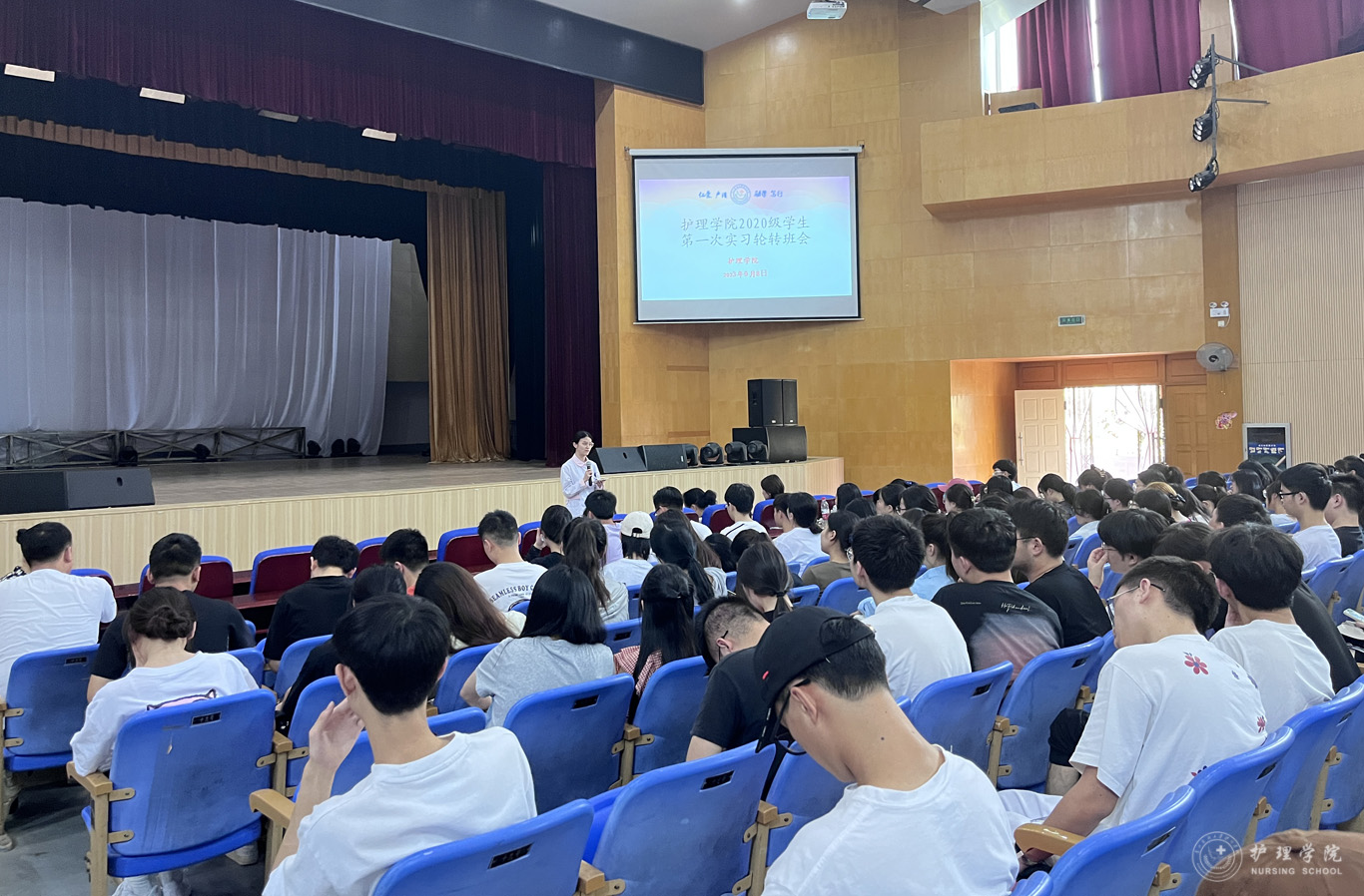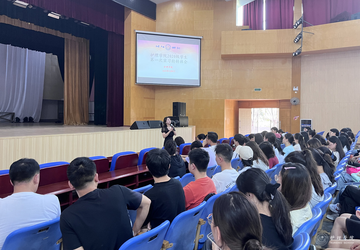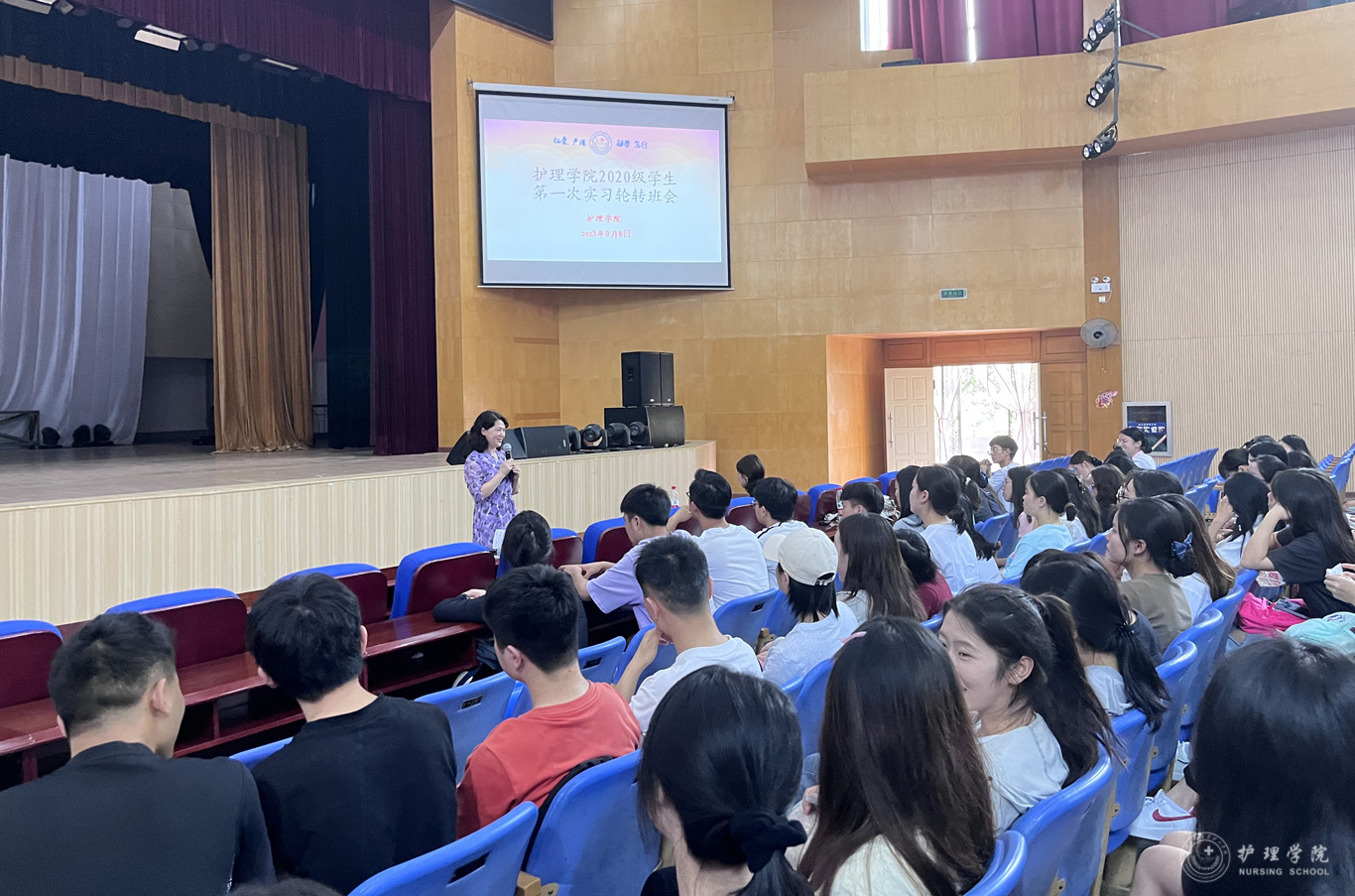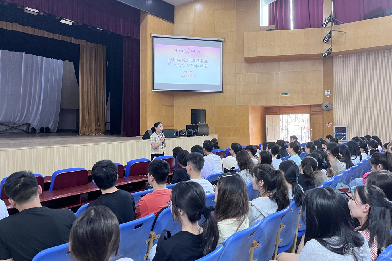 9月8日,美加墨世界杯官方网站在北校区礼堂召开2024届(2020级)毕业实习轮转会。美加墨世界杯官方网站院长李亚玲、副院长刘志燕、副处级组织员张黎、学生科副科长毕丽、辅导员刘妍以及全体2020级学生参加线下线上会议。会议由生产实习科科长柳忠燕主持。