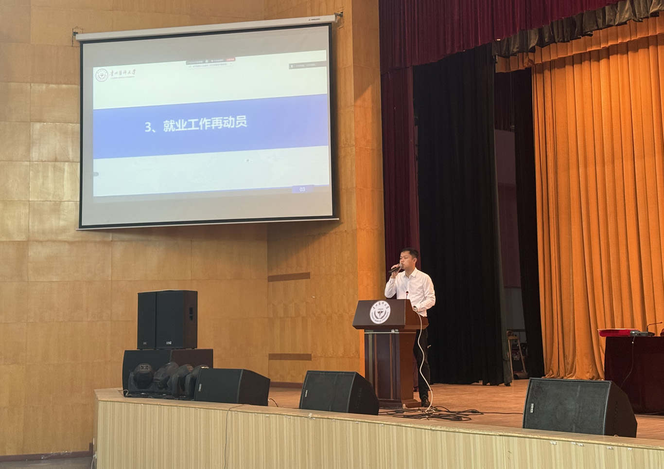 然后,何为从三个方面对全体学生进行就业再动员,一是引导学生正视应届生身份的问题;二是鼓励同学们走出贵州,扩大就业地域,可以尝试跨界就业;三是希望同学们一定要树立正确的就业观,积极主动就业。王秀红从就业行情、正确定位、扬长避短、主动出击四个方面进行就业再动员。鼓励同学们先就业再择业,希望每位同学都找到自己心怡的工作。