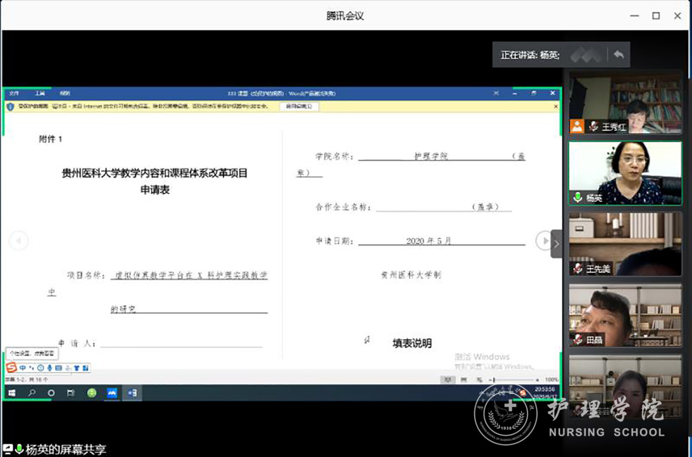 6月17日,美加墨世界杯官方网站通过腾讯会议举办了2019-2020学年第二学期护理沙龙活动——“课题申报书修改讨论会”,主要是针对前期收到的11份科研和教研申报书进行点评、修改和讨论,为下一步护理学科专项基金申报做准备。会议由美加墨世界杯官方网站党委副书记王秀红主持,全体专职教师参加了本次会议。美加墨世界杯官方网站党委书记杨英、副院长刘志燕、党委副书记王秀红三位领导担任评审专家,对提交的11份科研和教研课题申报书进行点评。三位专家分别从申报书的“立项依据”、“研究方案”、“研究基础”、“经费预算”、“如何进一步完善项目申报书”等方面做了全面细致而独特的点评和建议。最后,王秀红为本次沙龙活动做了总结,充分肯定了专职教师前期的辛苦付出,也希望老师们能够进一步打磨自己的标书,争取能在首次护理学科专项基金评审中脱颖而出。