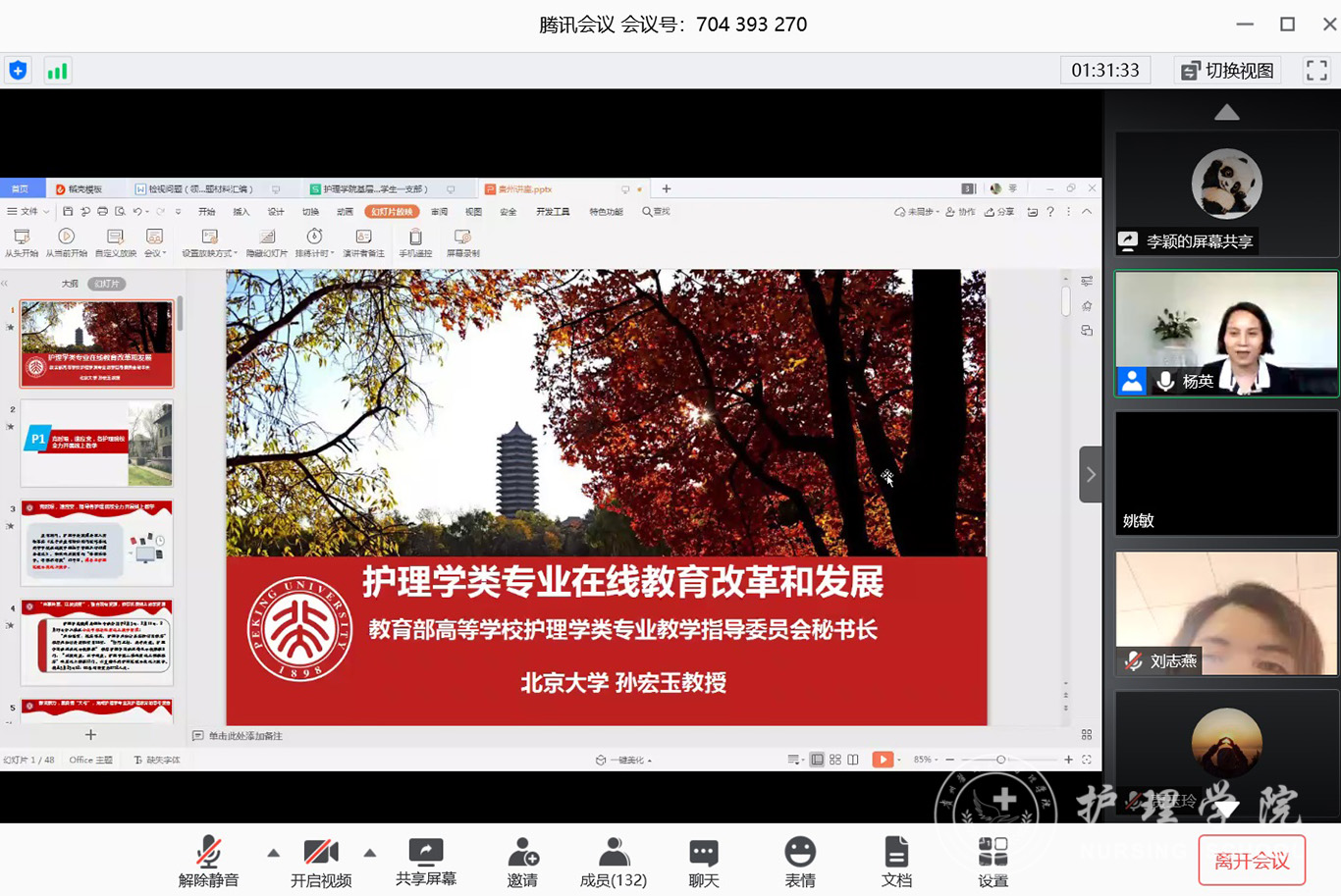 最后,孙宏玉教授结合护理学专业在线教育的光明前景,建议与会人员精心准备、大胆尝试、努力精进,为护理学专业线上教学的改革与发展做出新的贡献。