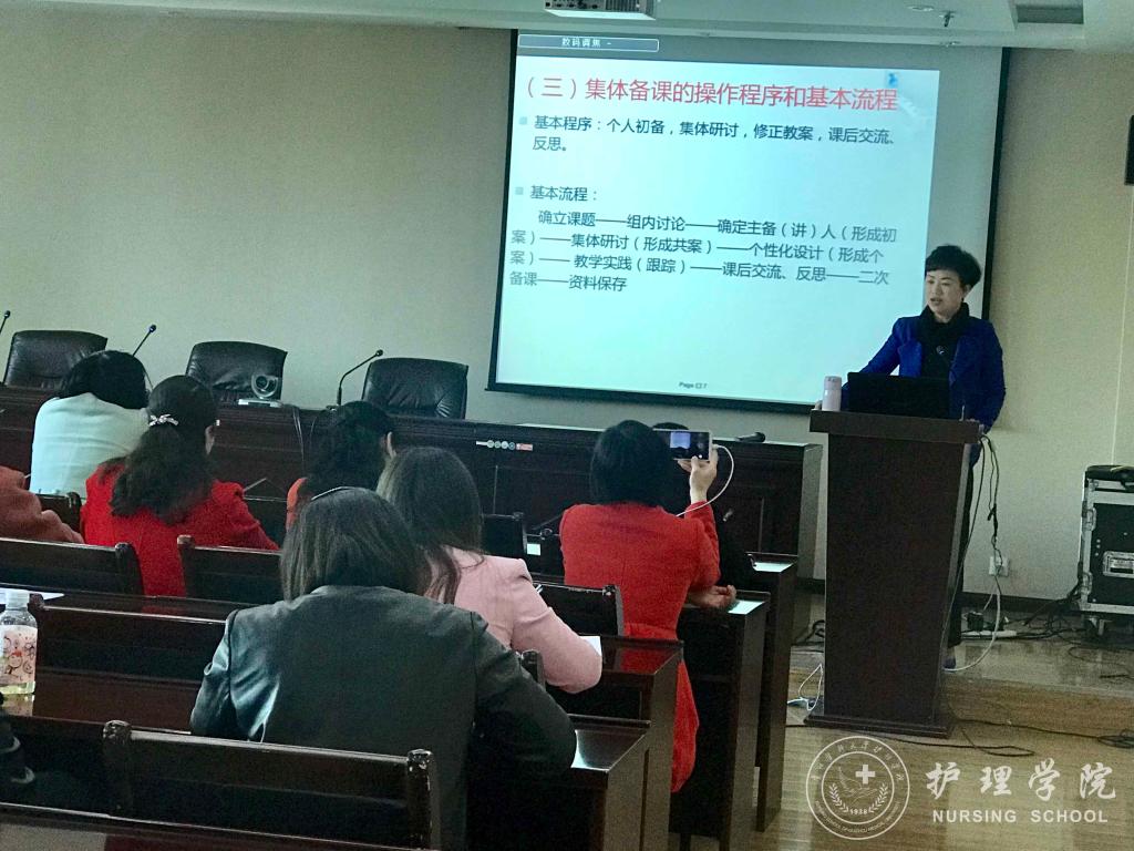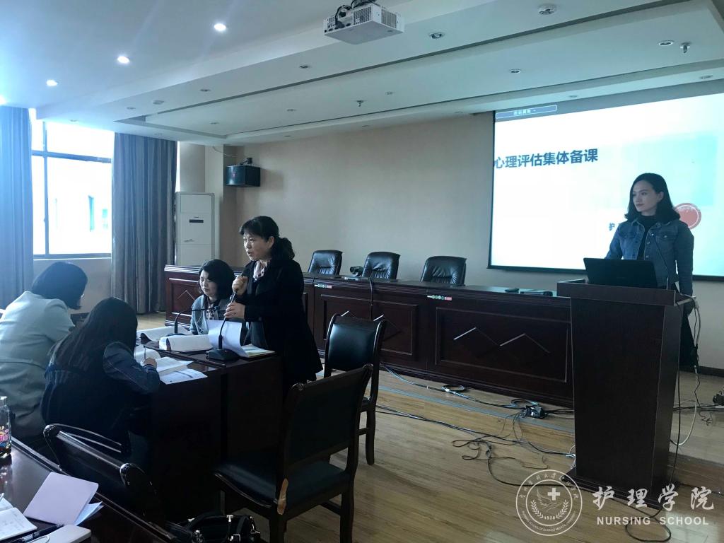 活动由美加墨世界杯官方网站副院长刘志燕主持,美加墨世界杯官方网站教学科研管理科科长王秀红以“如何开展集体备课和试讲”为题,从集体备课的好处、如何开展集体备课、集体备课应注意的问题、如何更好的进行试讲、学校集体备课、试讲制度介绍等方面结合实际逐一进行了阐释。内科护理学教研室晏家芳、罗晶、李宇、技能实验室王丽等老师以《心理评估》课程内容做了集体备课现场演示。
