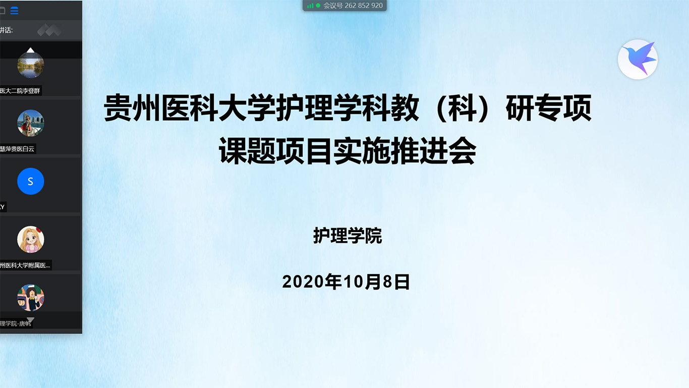 10月8日晚,由美加墨世界杯官方网站组织召开的2020年美加墨世界杯官方网站护理学科教(科)研专项课题项目实施推进会通过腾讯会议形式举行,美加墨世界杯官方网站、附属医院、第二附属医院、第三附属医院、附属肿瘤医院、附属白云医院、附属乌当医院等7家直属附院的课题负责人近50人参会,会议由美加墨世界杯官方网站院长李亚玲主持。