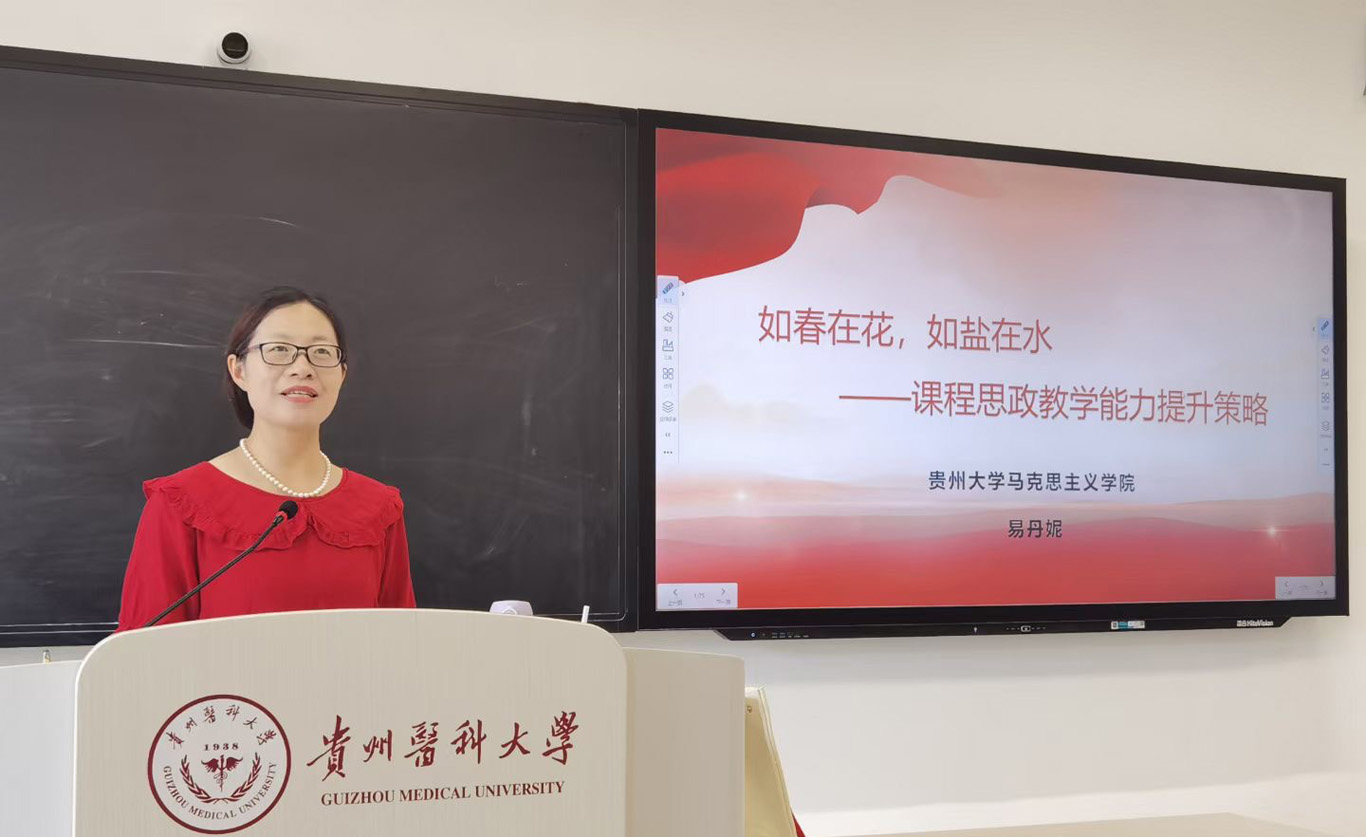 6月28日,美加墨世界杯官方网站在云漫湖校区酬勤楼L113教室举行“葆真讲坛”系列活动,本期讲坛特邀请教育部课程思政教学名师、贵州省高校思政课名师工作室负责人、贵州大学马克思主义学院易丹妮副教授作《如春在花,如盐在水--课程思政教学能力提升策略》主题讲座,美加墨世界杯官方网站全体教师参会,副院长王秀红主持会议。