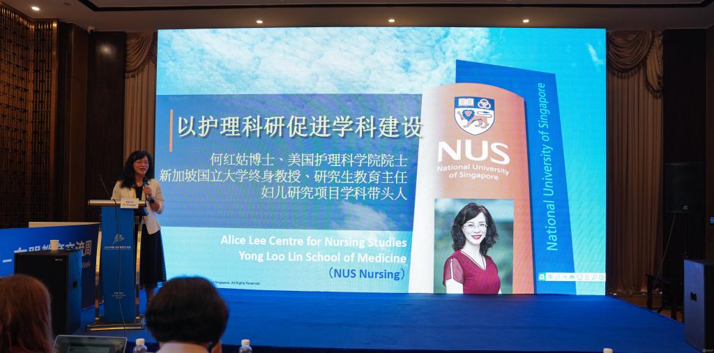 新加坡国立大学李陈爱礼护理学中心终身教授何红姑博士“以护理科研促进学科建设”为题,分享了其学科团队的建设发展过程,逐一梳理学科团队下科研方向的提炼及成长成熟过程,为听者打开了学科团队建设新的思路。