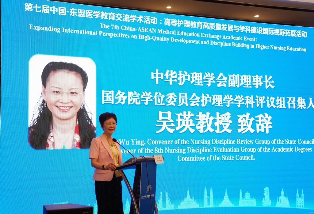 中华护理学会副理事长、国务院学位委员会护理学学科评议组召集人、首都医科大学临床美加墨世界杯官方网站院长吴瑛教授致辞指出,护理学科建设必然需要国际的交流,这有利于推动护理学科的多学科融合、提高护理学的综合实践能力和科学研究水平、促进国际护理教育合作、加强国际医疗卫生政策对话、提升国际医疗卫生服务水平。此次交流活动可以推动中国与东盟及友好国家在高等护理教育领域的合作与交流,特别是在学科建设、研究生教育和先进管理理念和优质资源的整合、共享上发挥重要的作用。