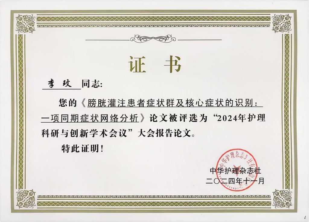此外,世界杯官网2022级护理研究生李玟以“膀胱灌注患者症状群及核心症状的识别:一项同期症状网络分析”为题进行了大会交流汇报,得到与会者充分肯定,对自身的学术成长历程和科研能力也有一定的促进作用。