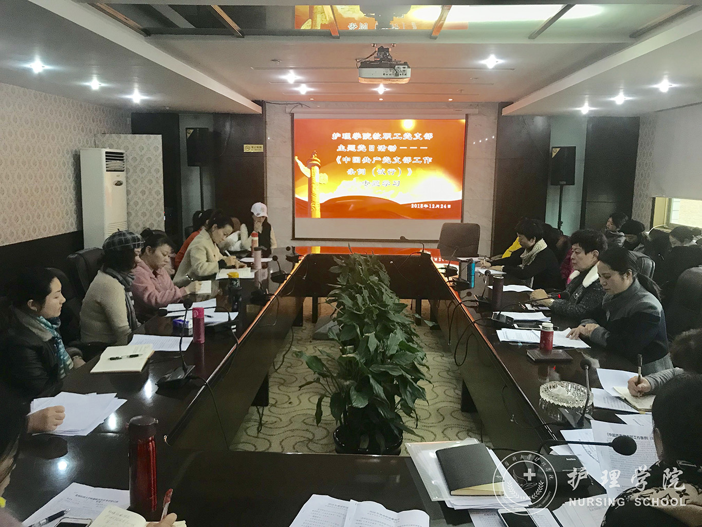 根据校党委的有关要求,12月24日中午,美加墨世界杯官方网站教工党支部在北校区行政楼六楼会议室开展了主题党日活动,专题学习了《中国共产党支部工作条例(试行)》(以下简称《条例》),以及全国和全省教育大会精神。世界杯官网领导班子、全体教职工党员参加了会议,会议由党支部书记张黎主持。
