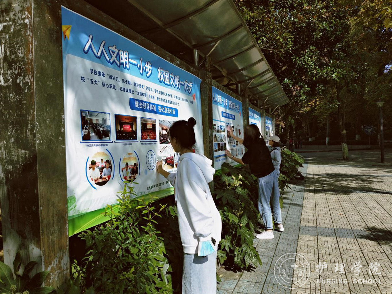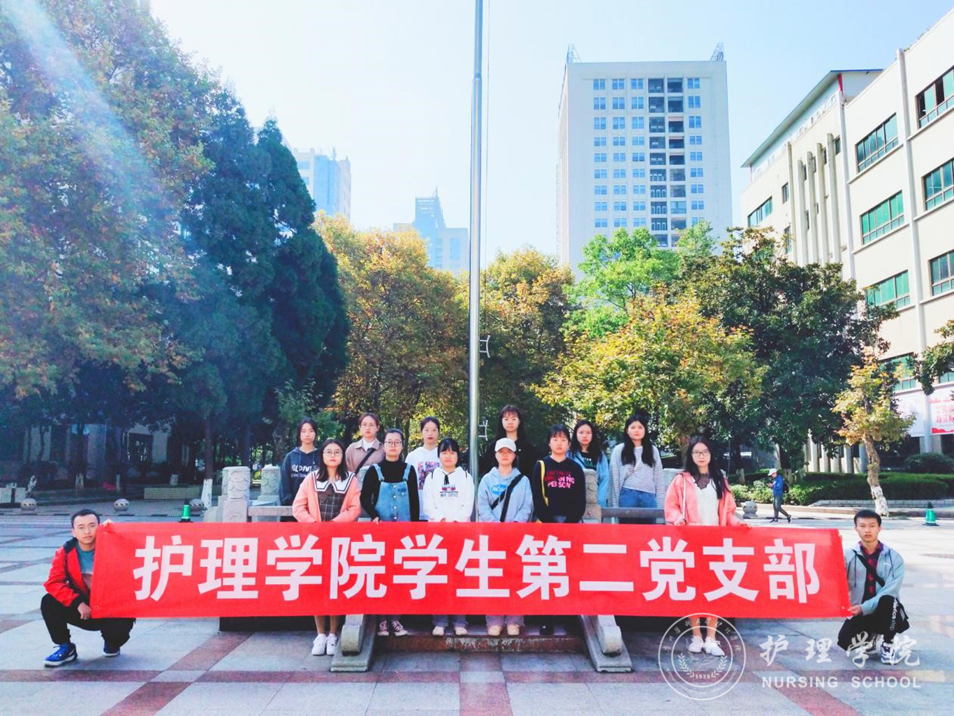 志愿服务暖人心,文明之花处处开。上午十点,学生第二党支部支部委员徐亚兰组织全体党员志愿者在旗杆处集合,然后分小组在校园内进行志愿服务。为营造美丽、文明、和谐的校园环境,党员志愿者们纷纷行动起来,有的打扫干净每一寸路面,让果皮纸屑无处躲藏;有的擦干净每一根栏杆,让灰尘泥土不见踪影;有的细心呵护每一块绿地,让校园披上绿色的衣裳;有的擦净每一块宣传栏,让校园文化更加深入人心,直到校园变得美丽整洁,志愿者们才结束了此次活动。