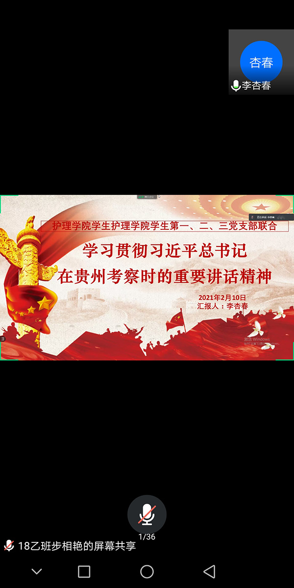 2月10日,美加墨世界杯官方网站学生党支部组织党员同学通过腾讯会议,学习贯彻习近平总书记视察贵州重要讲话精神。本次会议由美加墨世界杯官方网站学生第二党支部书记李杏春主持并带领学习。