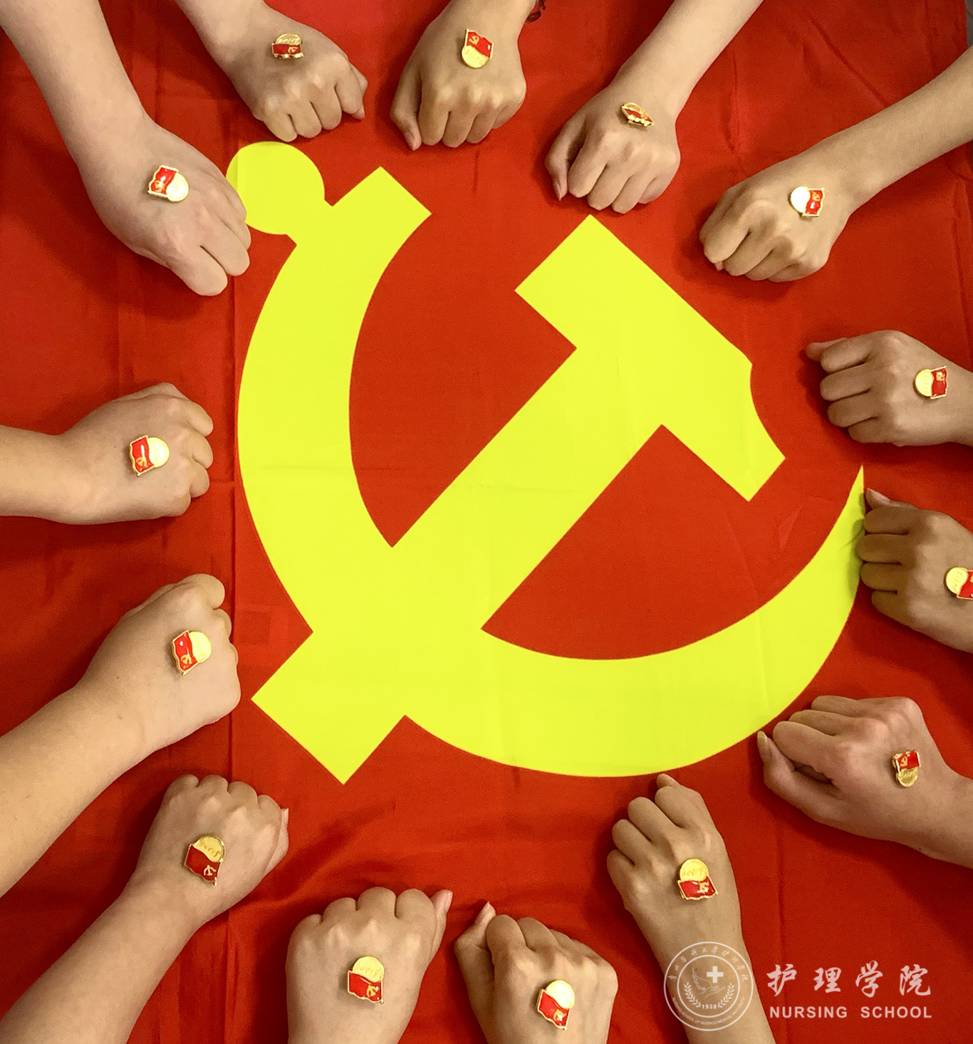 学生第三党支部全体党员党徽在胸、党旗在手,心怀对党最崇高的敬意,用镜头记录党旗的美丽风采,用独特创意保留“我与党旗”的精彩瞬间,展现党员颗颗红心永向党的精神面貌,诠释党员矢志不渝跟党走的坚定信念。