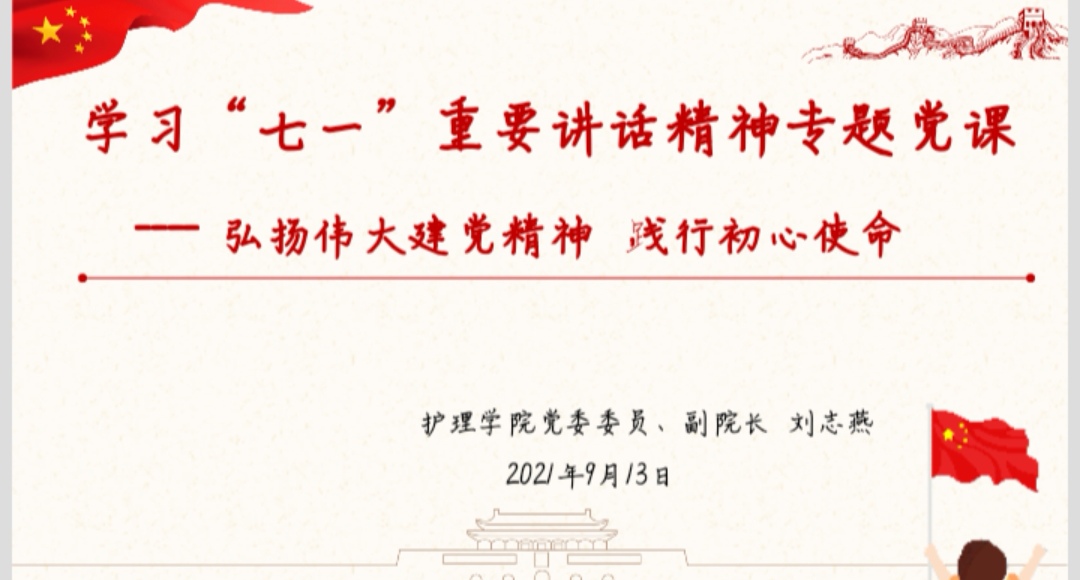 9月13日,为深入开展党史学习教育,贯彻落实习近平总书记“七一”重要讲话精神,美加墨世界杯官方网站党委委员、副院长刘志燕以《弘扬伟大建党精神,践行初心使命》为题,通过线上会议方式为学生第二党支部38名学生党员上了一堂专题党课。