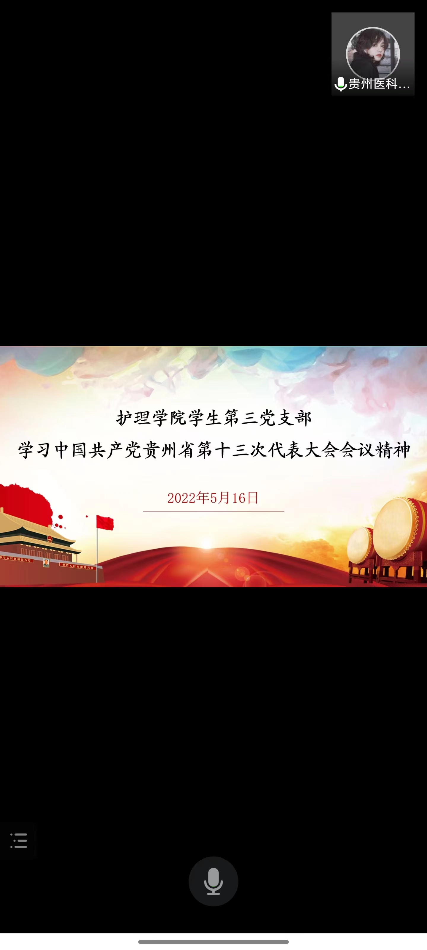 5月14日至5月16日,美加墨世界杯官方网站三个学生党支部分别在腾讯会议开展了学习宣传贯彻中国共产党贵州省第十三次代表大会精神活动。学生第一党支部书记杨叶卿、学生第二党支部书记刘文壮、学生第三党支部书记刘妍分别主持会议,各支部党员参会,美加墨世界杯官方网站党委副书记兼纪委书记何为以普通党员身份参加学生第二党支部组织的会议。
