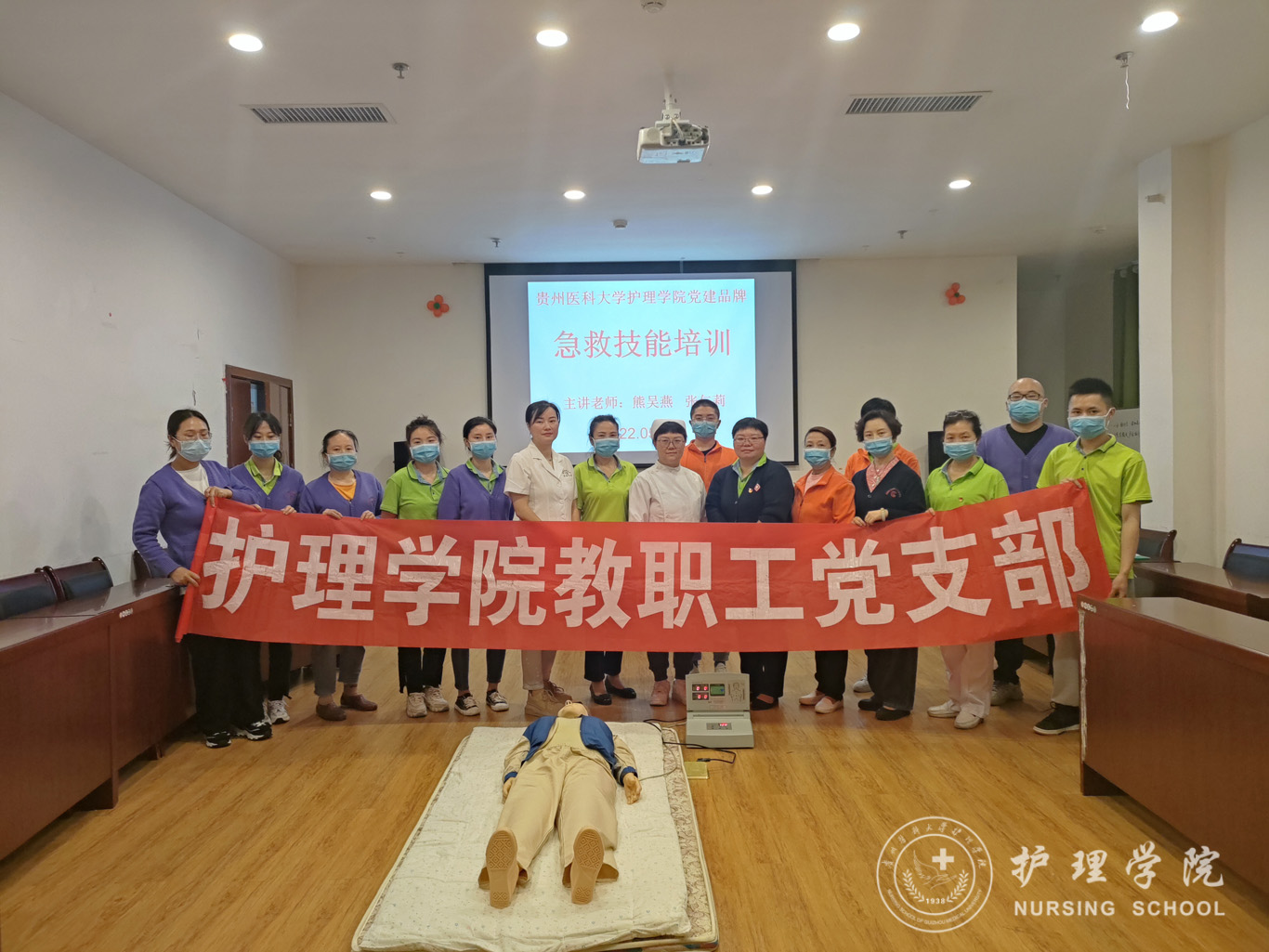 为进一步推进美加墨世界杯官方网站“护佑夕阳 ‘救’在身边”党建品牌建设工作,5月12日,美加墨世界杯官方网站教职工党支部赴南明区晚霞彩带日间照料中心(院级“三全育人实践基地”“人文关怀素养校外创新实践基地”“党员志愿服务基地”)开展了急救技能培训,活动由晚霞彩带日间照料中心游主任主持,美加墨世界杯官方网站教职工党支部书记张仁莉、护理学基础教研室副主任熊吴燕及照护中心全体工作人员参加。