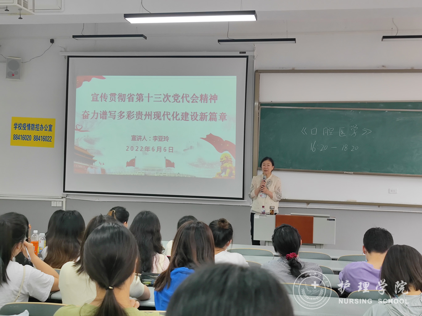 6月6日,为引导党员更好领会省第十三次党代会的丰富内涵和精神实质,切实把思想和行动统一到大会精神上来,美加墨世界杯官方网站学生第三党支部在北校区普教7开展了省第十三次党代会精神宣讲,本次宣讲由美加墨世界杯官方网站党委委员、院长李亚玲主讲,支部书记刘妍主持,支部全体党员参会。